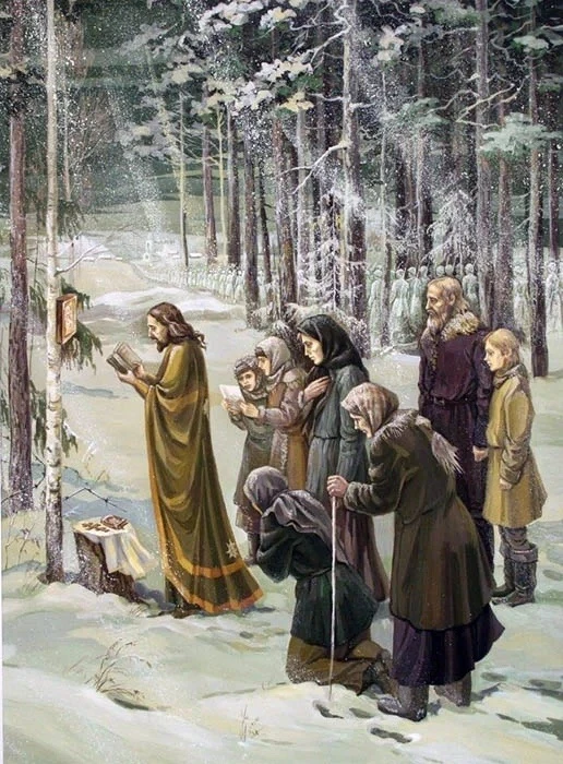И решили девушки в соседнее село идти, где храм стоял, у батюшки совета испросить. Пришли они в храм, службу отстояли, а опосля подошли к старенькому священнику да всё и рассказали. И поведал им батюшка вот какую историю: