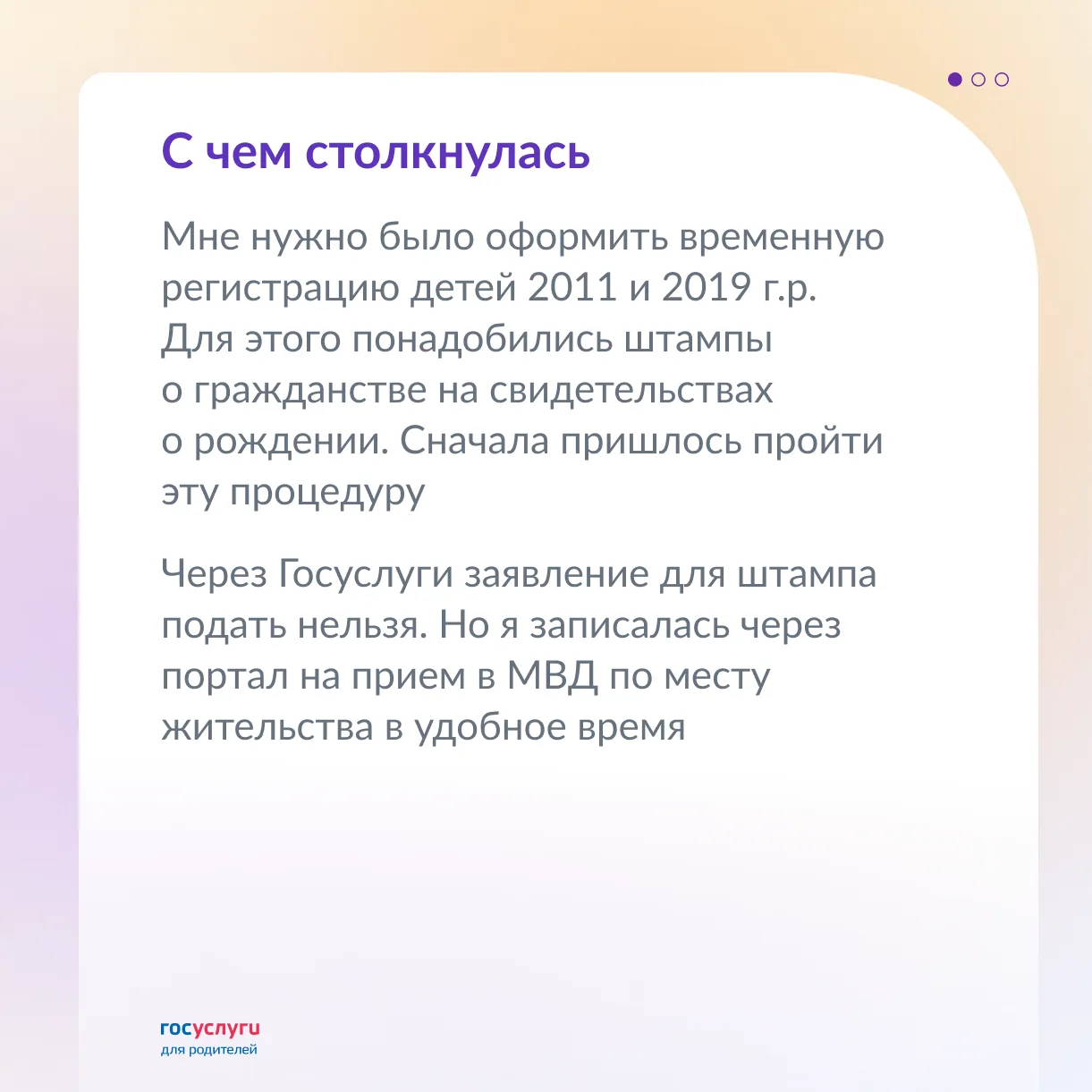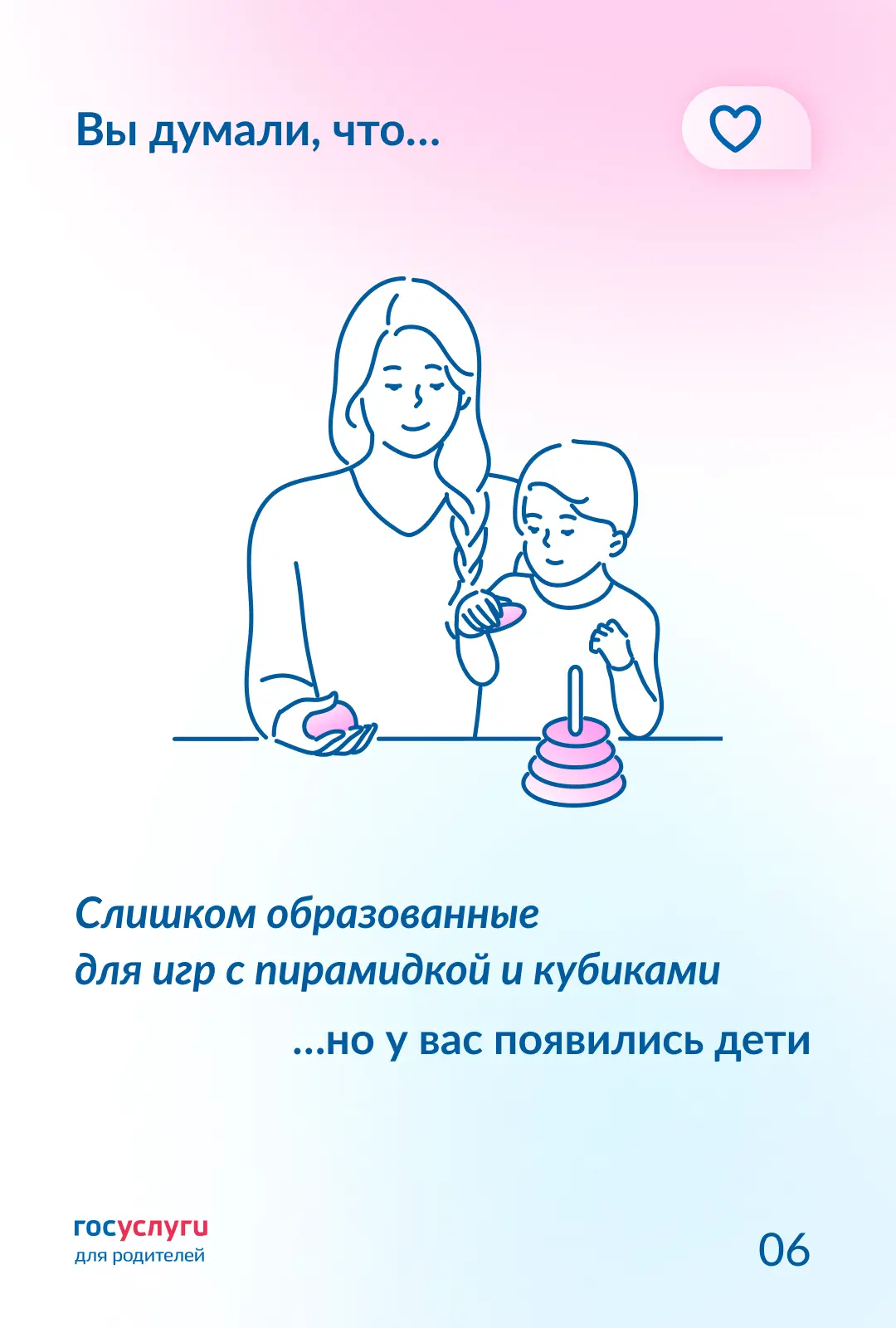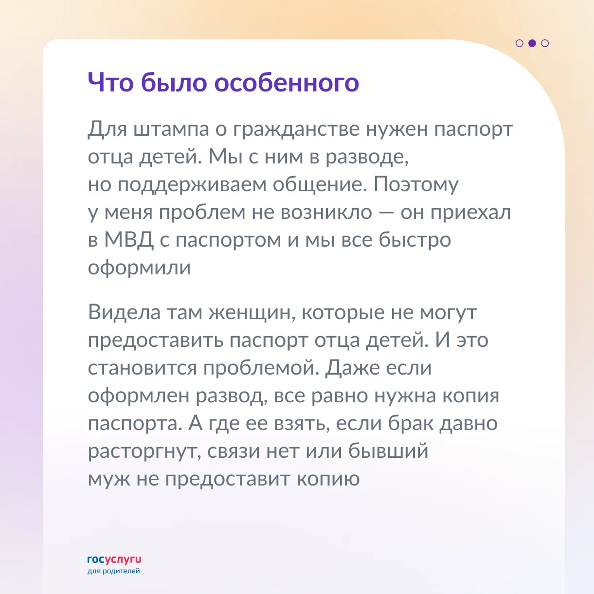 Ее опыт — в карточках. Вы тоже можете поделиться, как оформили пособия или документы. Пишите на почту gosuslugiforparents@digital.gov.ru с темой «Мамино право». Это полезно всем родителям.