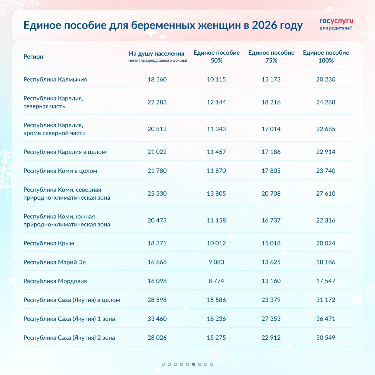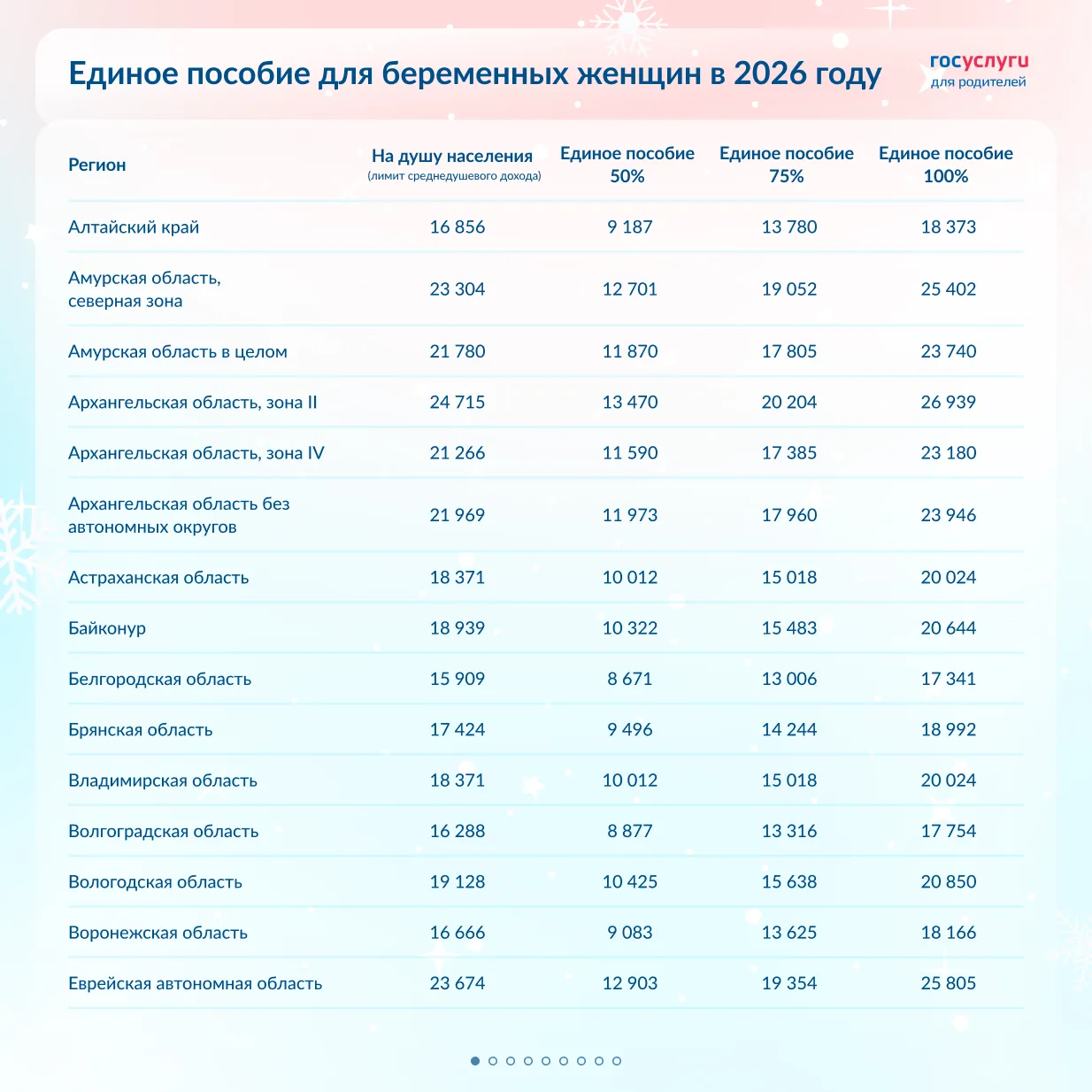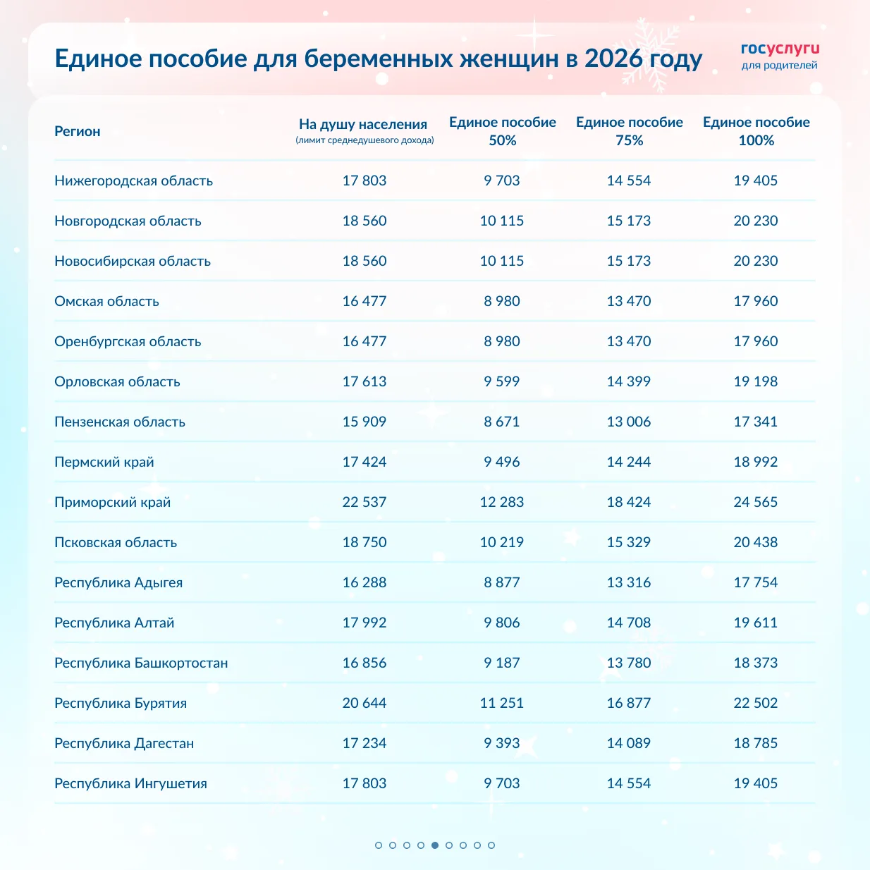 🤰 Размер единого пособия для беременных женщин в 2026 году: все регионы
