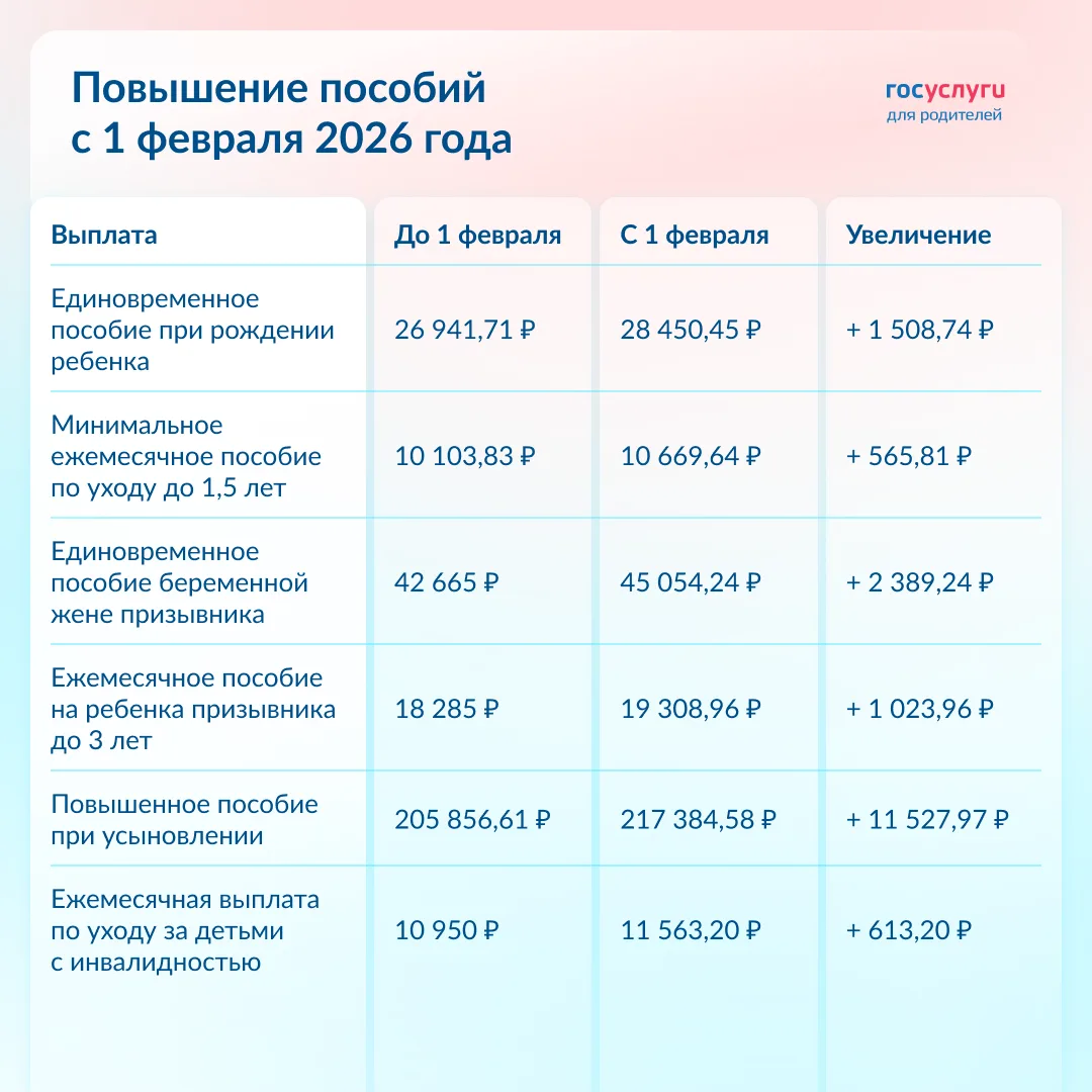 🤰 28 450,45 ₽ при рождении ребенка с 1 февраля 2026 года