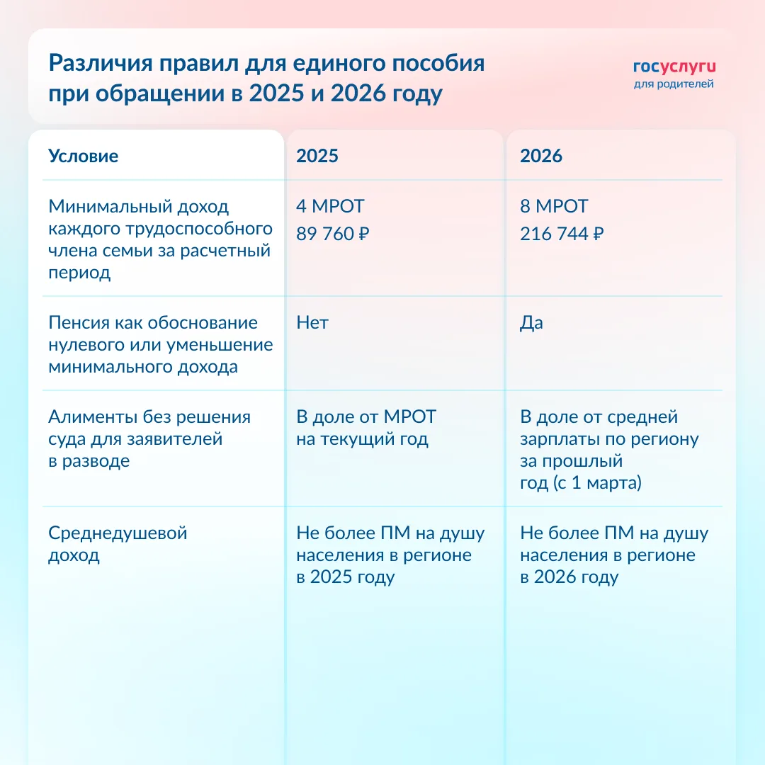 🔹 С 2026 года для единого пособия действуют новые условия. Ответы на вопросы об изменениях.