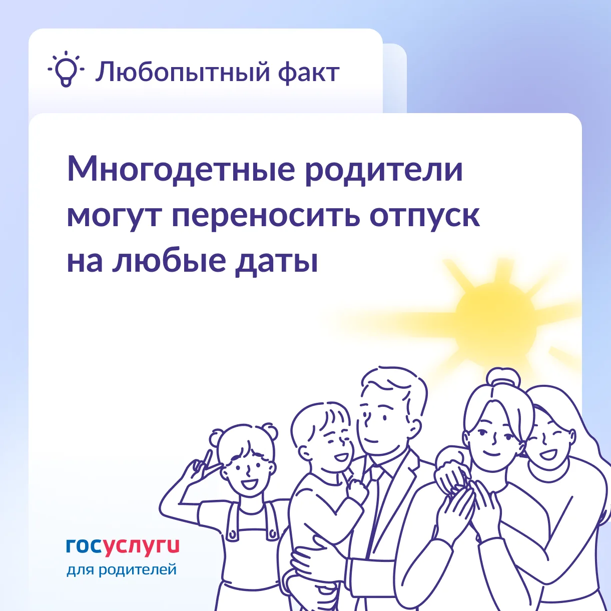 🔹 Многодетные родители могут переносить отпуск на удобное время. Даже при утвержденном графике.