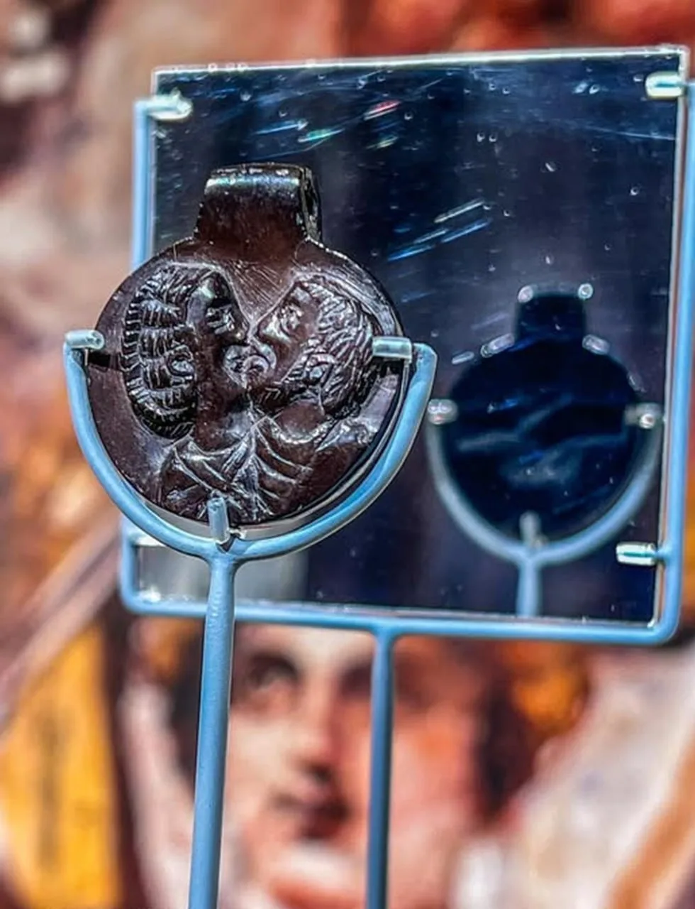 Трогательный и немного наивный римский медальон-подвеска из гагата, посвященный помолвке, римская Британия, конец III века н.э. https://vk.cc/cUs8RM