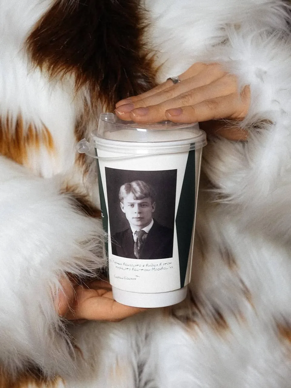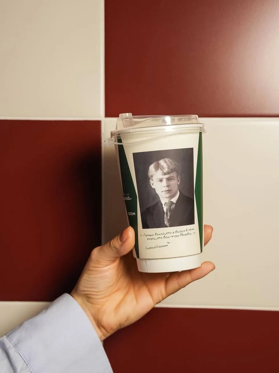 В кофейне «Аленка» объединили тепло кофейных зерен и душу русской поэзии и сделали красивые стаканчики с Есениным. Этот союз призван напомнить об искренности и красоте момента.