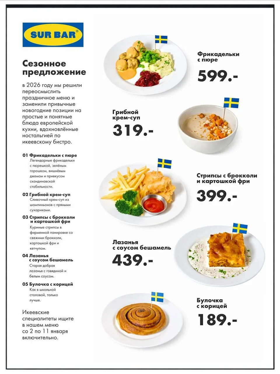 В кафе «Сюр» настоящие шведские каникулы. Здесь подают новогодние спешелы, вдохновленные ностальгическими блюдами из всеми любимого скандинавского бистро.