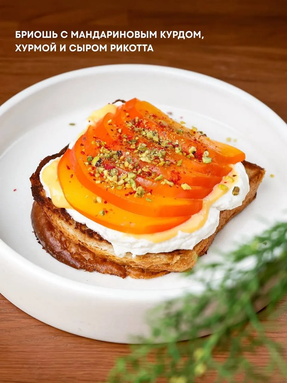 🍊 Бриошь с мандариновым курдом, хурмой и сыром рикотта (650 ₽)