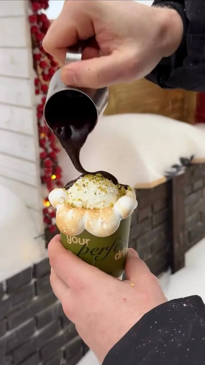 В ресторане JNKL появился какао, который напоминает о весне. Обожженные маршмэллоу обрамляют стакан, как лепестки ромашки, а внутри — шарик нежного пломбира с фисташковой крошкой, точь-в-точь ее солнечная сердцевина.