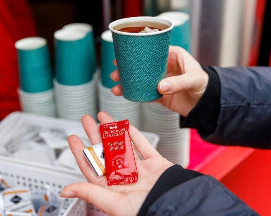 Напитки подаются в лимитированных стаканах со строками поэта. QR-код на них открывает доступ к скидке 15% на книги издательства «ЭКСМО» на OZON. Праздничную серию дополняют авторские стикерпаки и открытки с видами заснеженной Москвы.