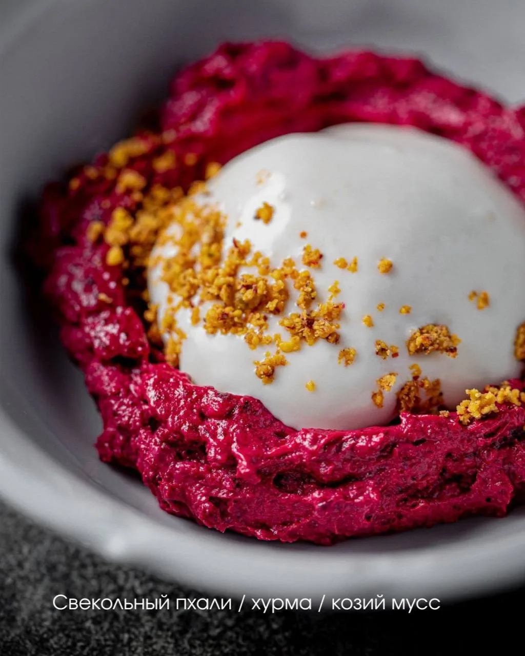🔴 свекольный пхали с хурмой и козьим муссом (580 ₽)
