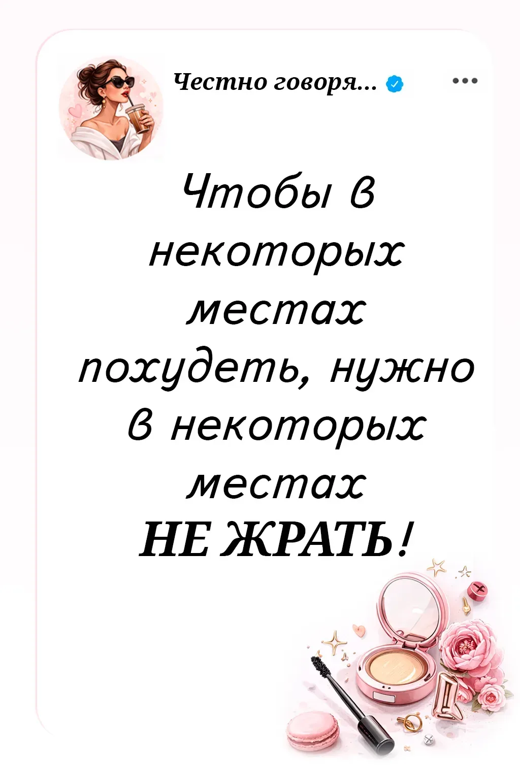 Ни цитат, ни рецептов, ни стандартных карточек с замыленными баянами. Только отборные мемы, шутки, котики и море позитива!