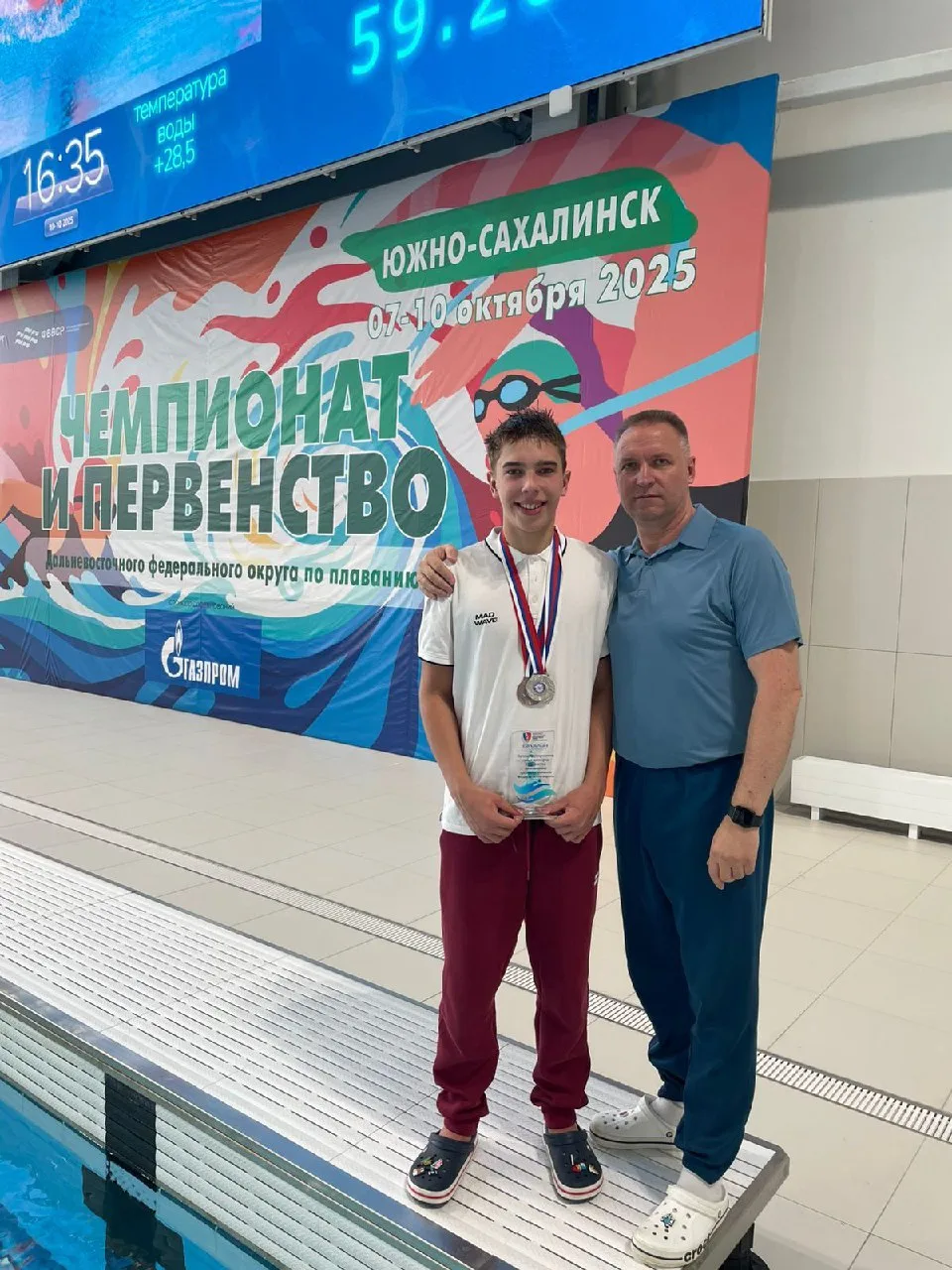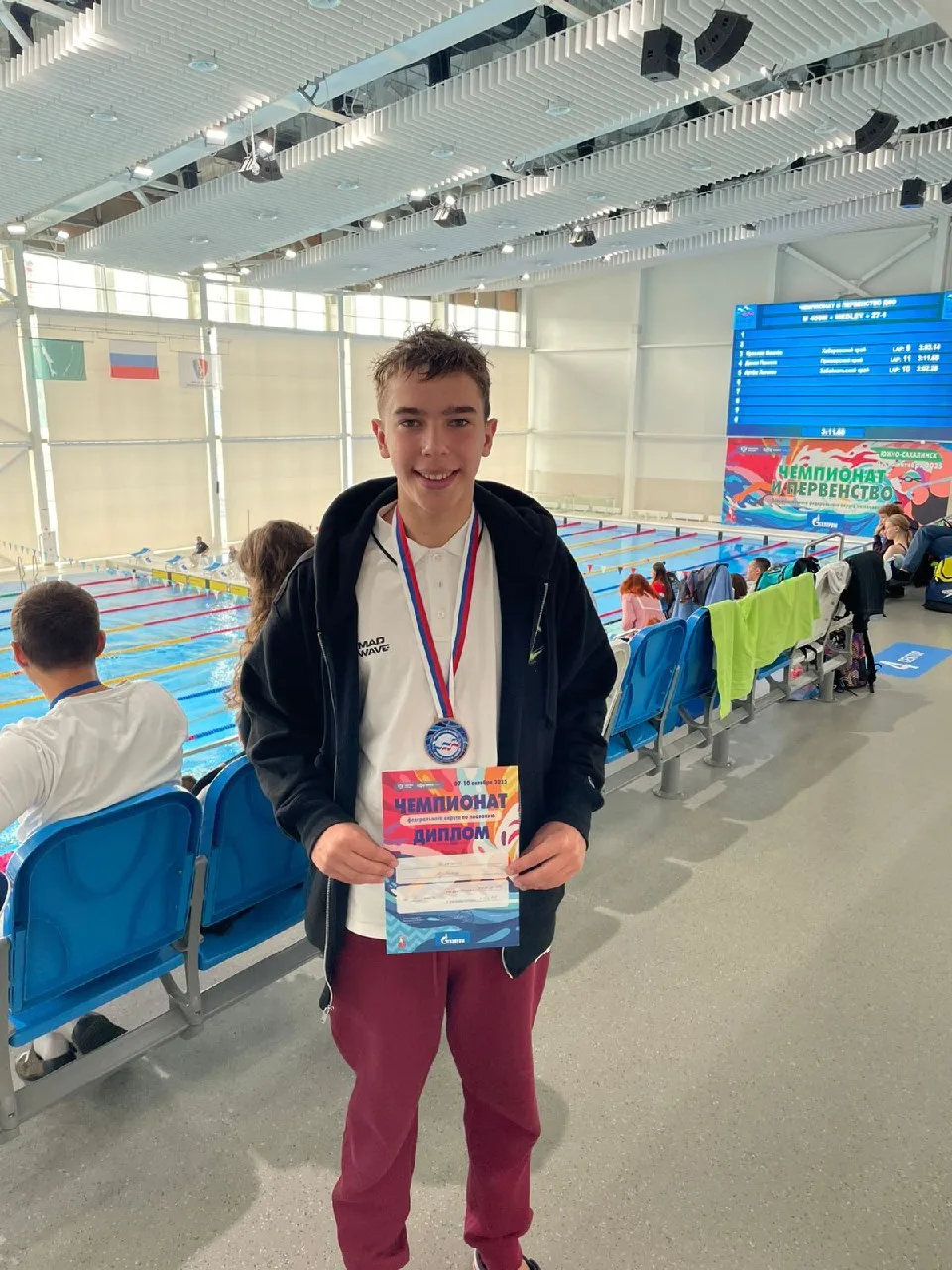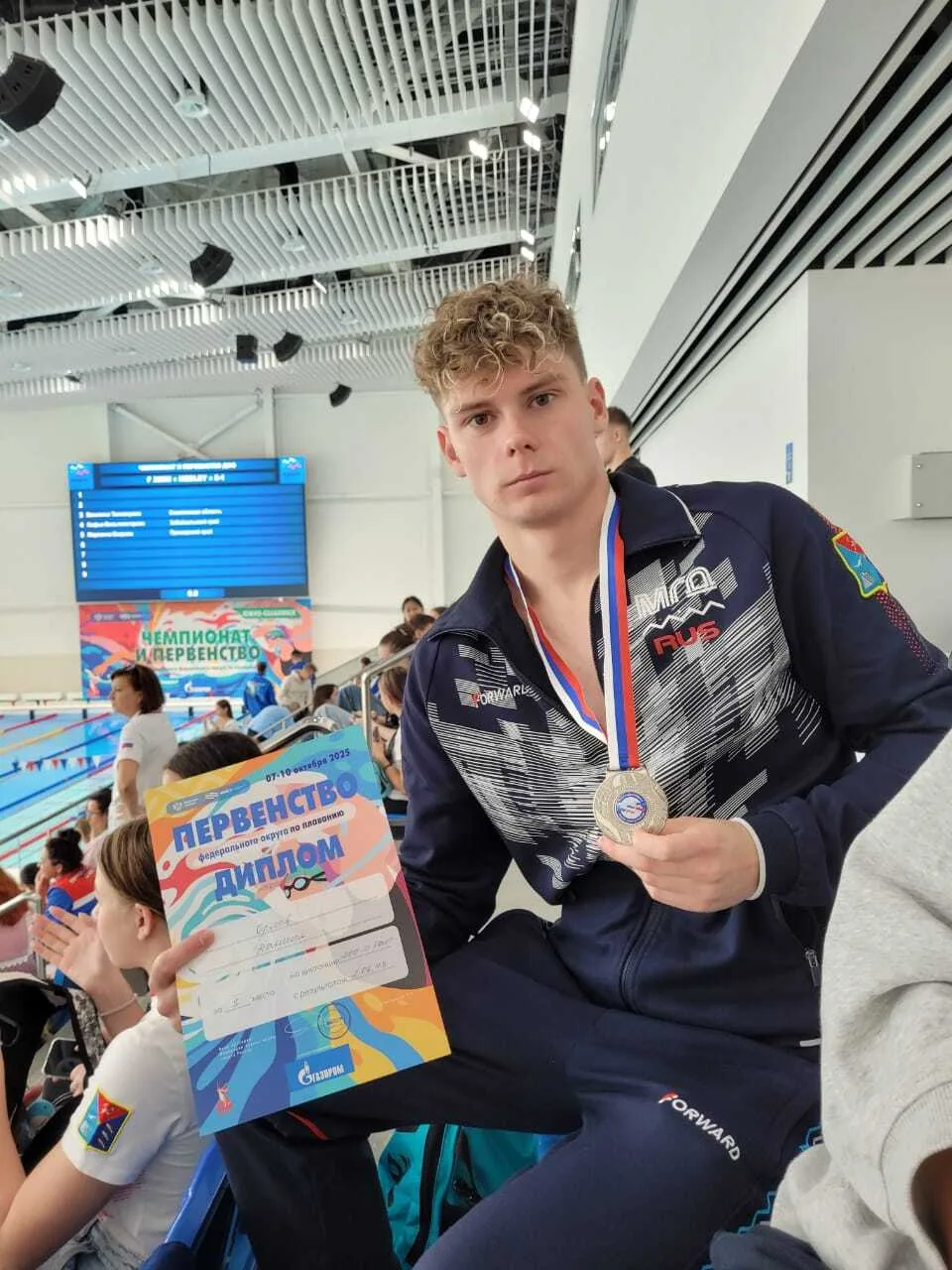🥉Также отличный результат показал Данил Кубов, на дистанции 200 м на спине он завоевал бронзовую медаль, проплыв по нормативу мастера спорта.
