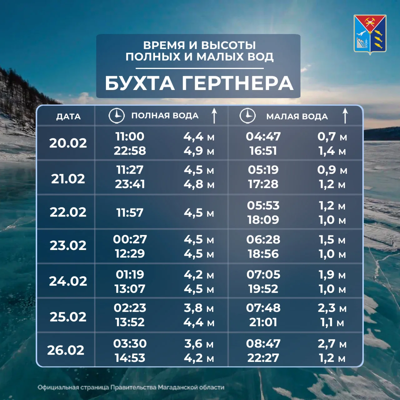 🌊 Таблица приливов и отливов с 20 по 26 февраля