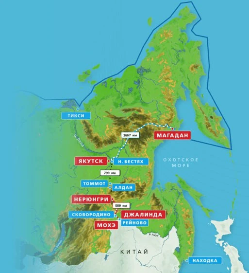 Для его создания необходимо реализовать два ключевых проекта: строительство железной дороги на юг от Якутии через территорию Амурской области на смешанный пункт пропуска Джалинда и строительство железной дороги Нижний Бестях – Магадан.