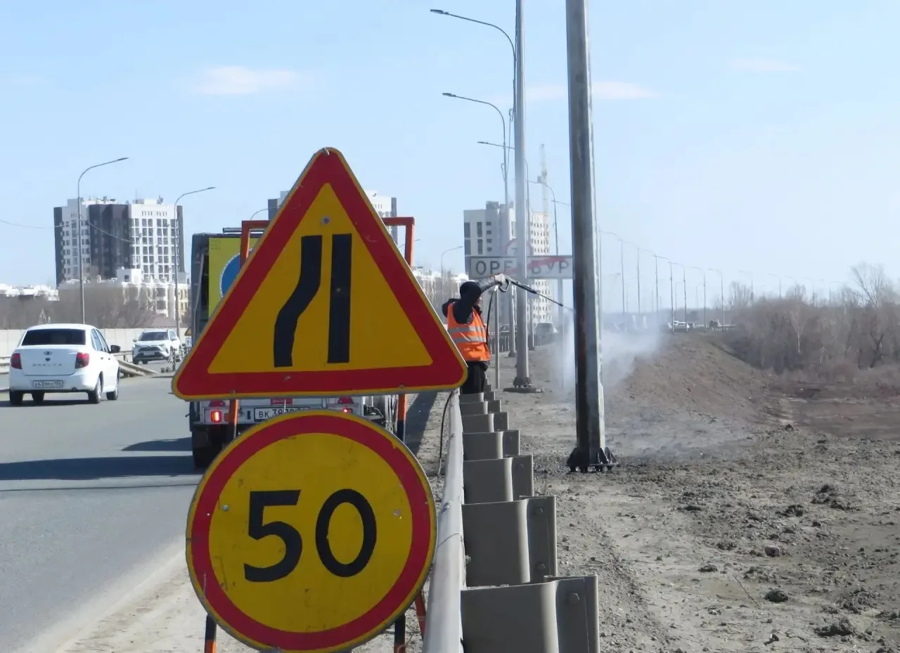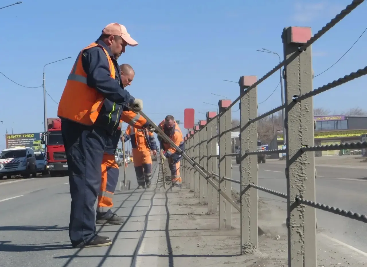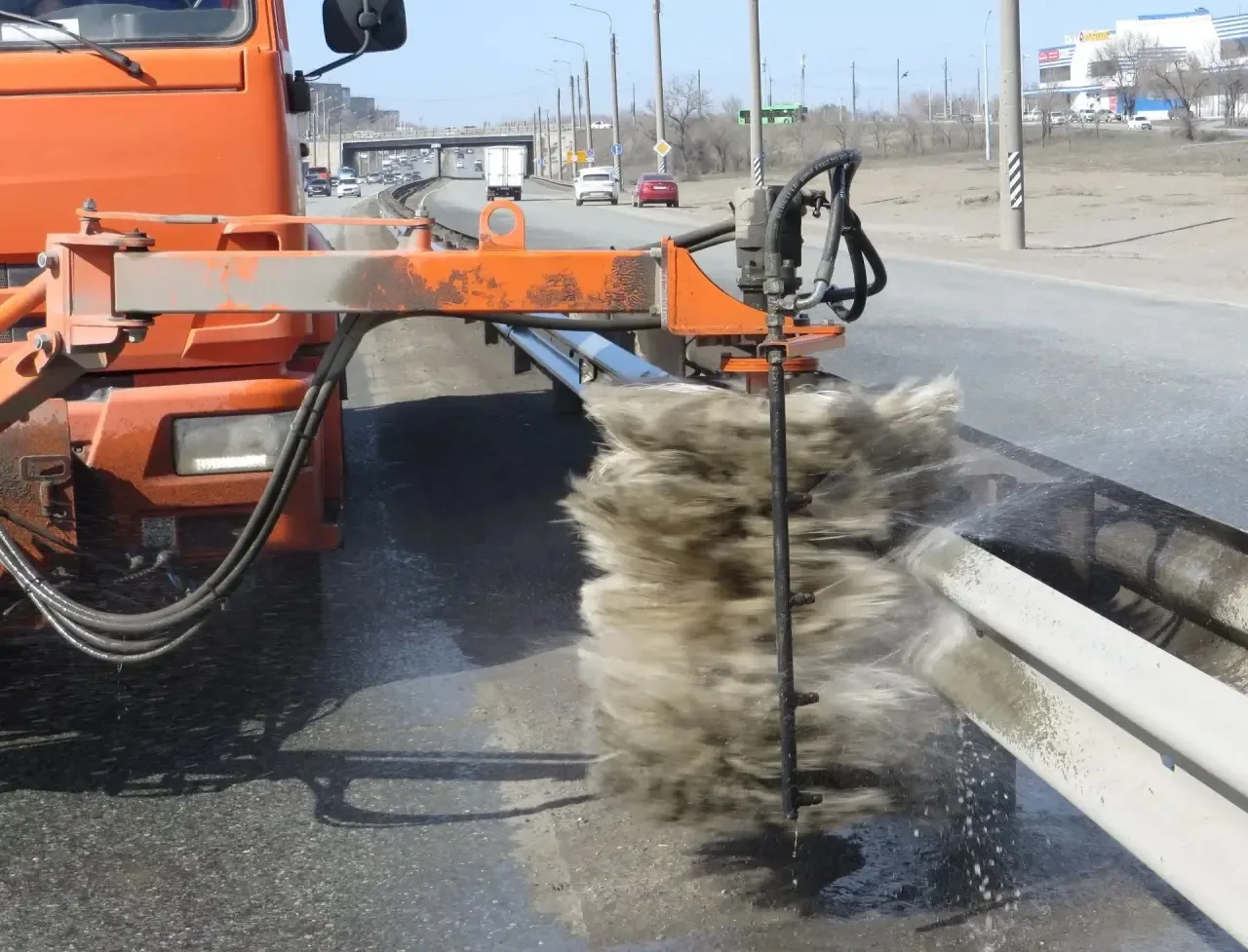 ✅ Специалисты АО «Оренбургремдорстрой» очищают барьерные, тросовые ограждения, световые опоры. Проводится планировка обочин автогрейдерами и уборка мусора в полосе отвода дорог.