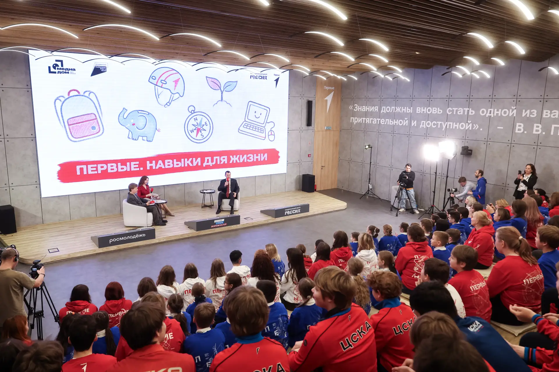 📍Министр спорта, председатель Олимпийского комитета России Михаил Дегтярев посетил медиадом «Движения первых» в Национальном центре «Россия» и ответил на вопросы школьников в рамках марафона «Первые. Навыки для жизни».