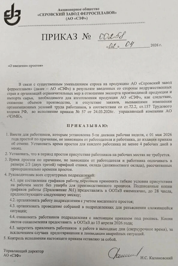 Ну что, приезжий вредитель по фамилии Калиновский, продолжает свою миссию по уничтожению завода! На сколько хватить терпения у работников, получать урезанную зарплату? 2,3,4 месяца? Потом люди просто побегут с него, ведь жкх, продукты, кредиты, сами себя не оплатят.