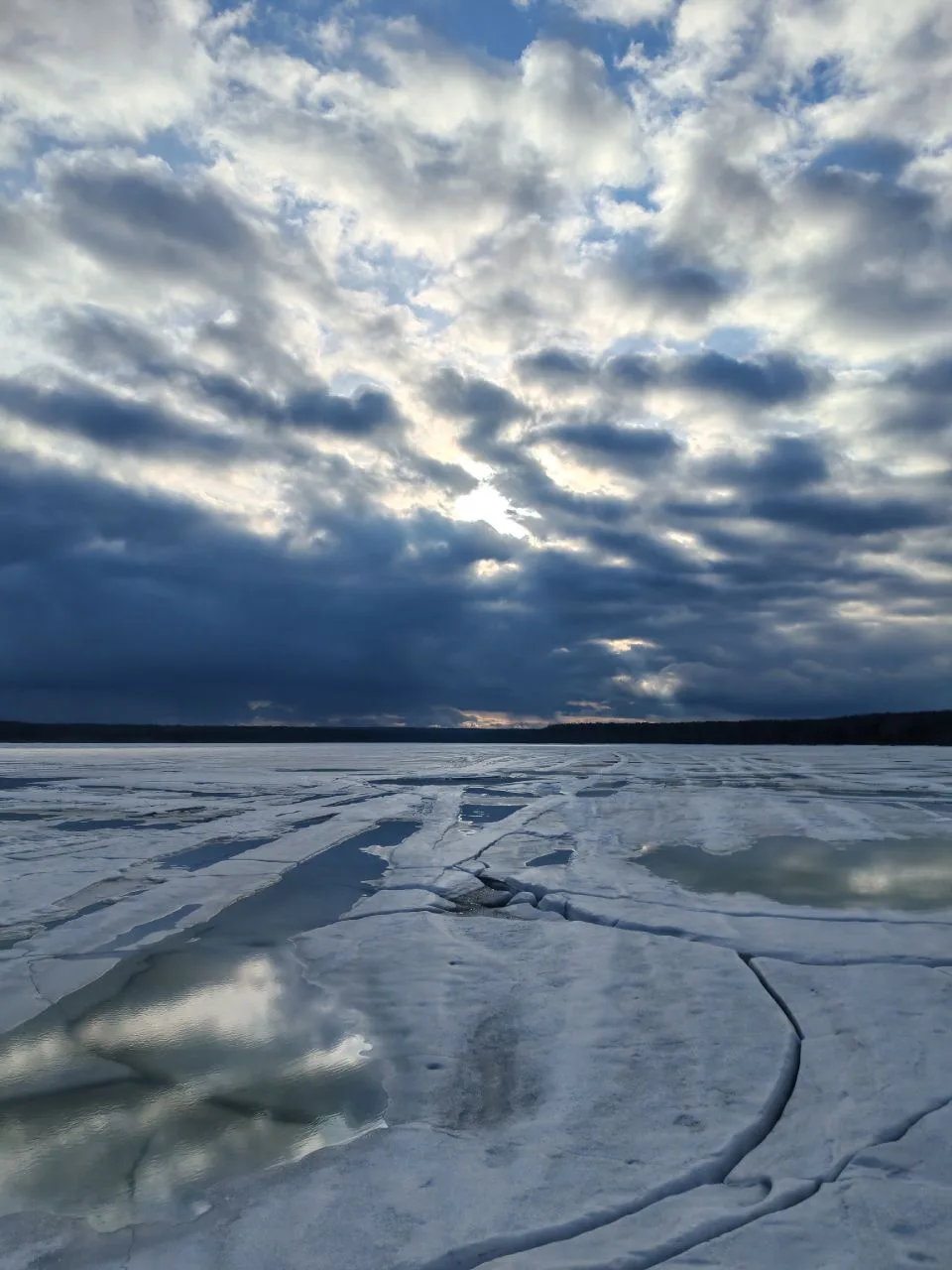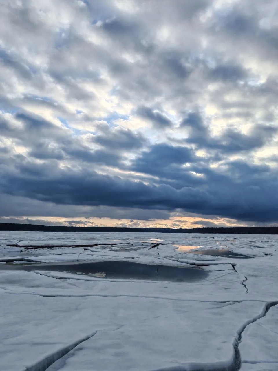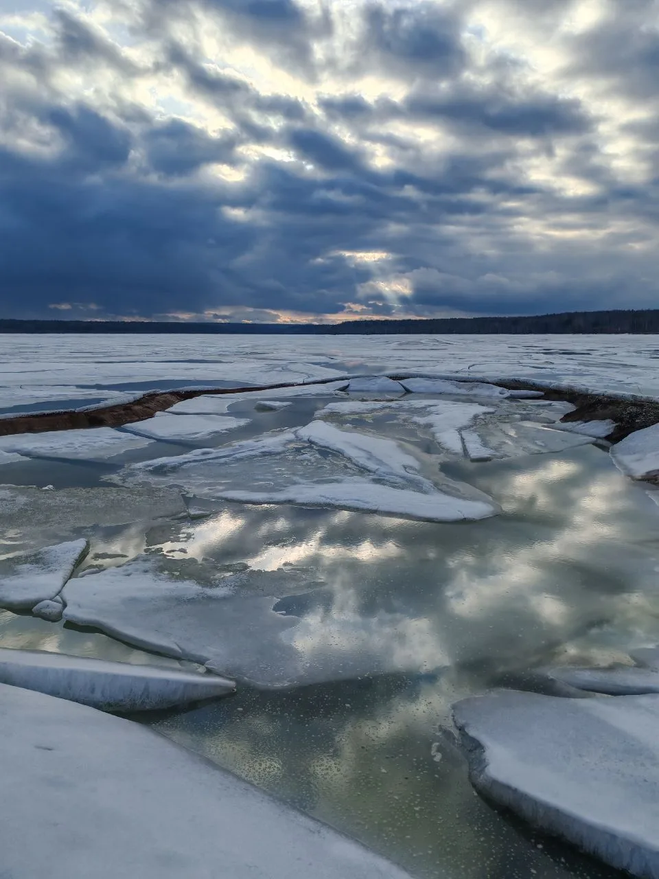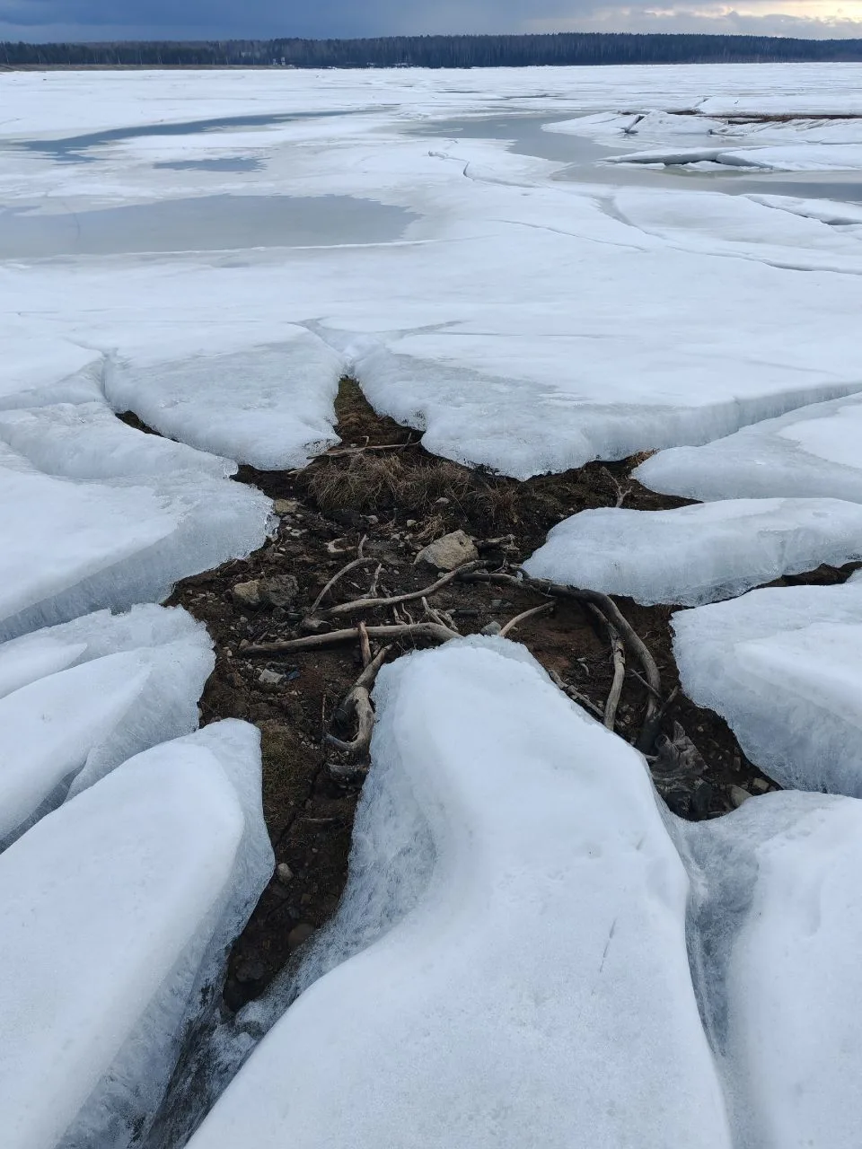 На "Серовском море" в настоящие дни вы можете наблюдать интересное явление похожее на лунную поверхность. Но все сильно прозаичнее: в ожидании мощного потока паводковых вод из-за таяния аномально-высокого уровня снега, выпавшего этой зимой на территории Урала, заблаговременно сильно понизили уровень наполнения водохранилища, сильнее открыв шлюз. На некоторых участках обножившегося дна можно наблюдать скопления раковин местных моллюсков. На сломах огромных застывших глыб любопытно было разглядывать ИГОЛЬЧАТЫЙ ЛЕД. В сочитании с красивым небом на закате и свежим воздухом это обещает стать необычной прогулкой после рабочего дня.