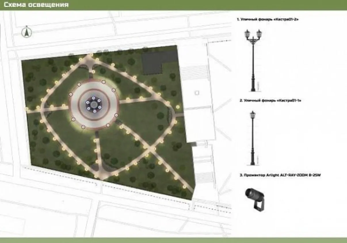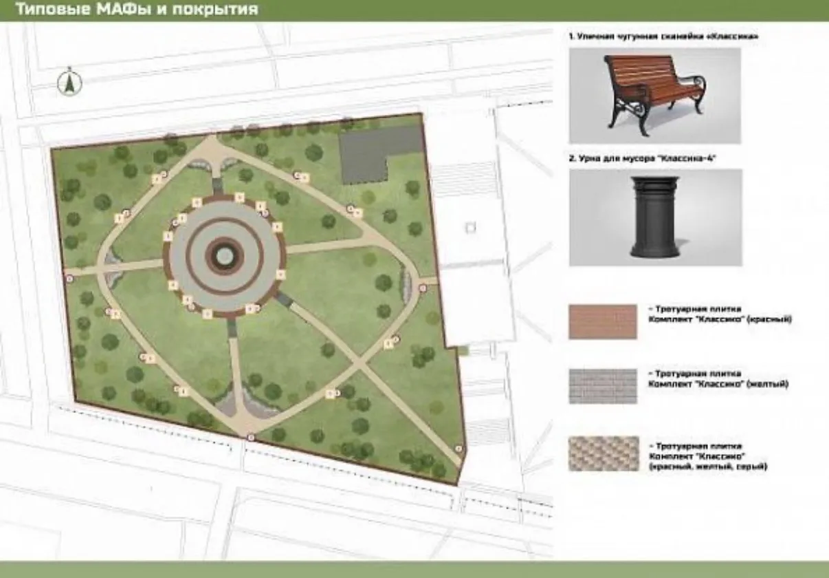 — новые деревья и кустарники: спиреи, гортензии, можжевельник, клёны, плакучие ивы — плюс цветники. Часть старых деревьев сохранят.