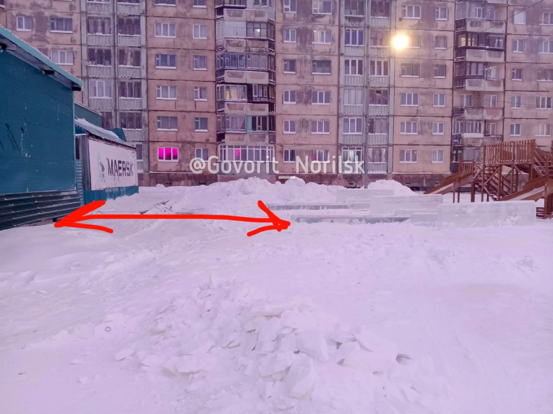 Это на 5-ом,мини- каток у подхода к остановке, от труб вытяжки супермаркета, можно ноги переломать, но никто ничего не делает.