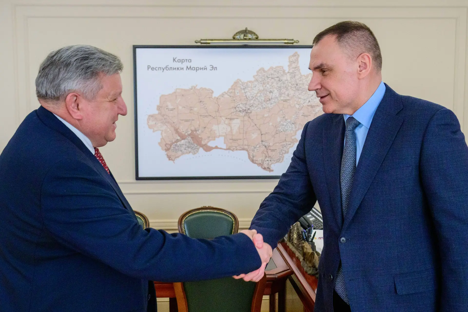 В рамках своей рабочей поездки в Республику Марий Эл заместитель Начальника Управления Президента РФ по государственной политике в гуманитарной сфере, заместитель председателя Российского военно-исторического общества (РВИО) Николай Овсиенко встретился с Главой Марий Эл. Встреча состоялась перед заседанием попечительского совета регионального отделения общества.