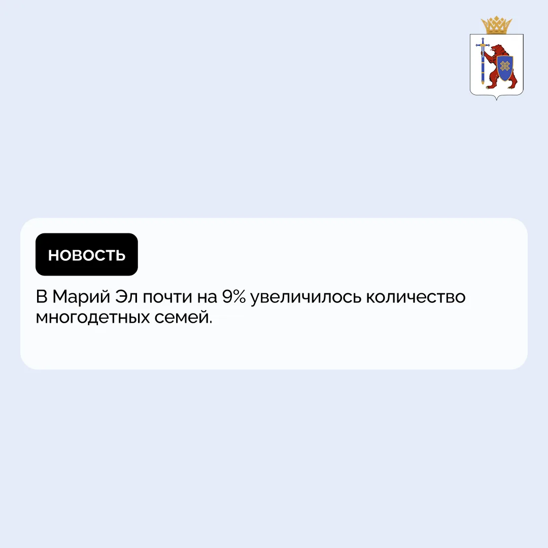 В Марий Эл почти на 9% увеличилось количество многодетных семей.