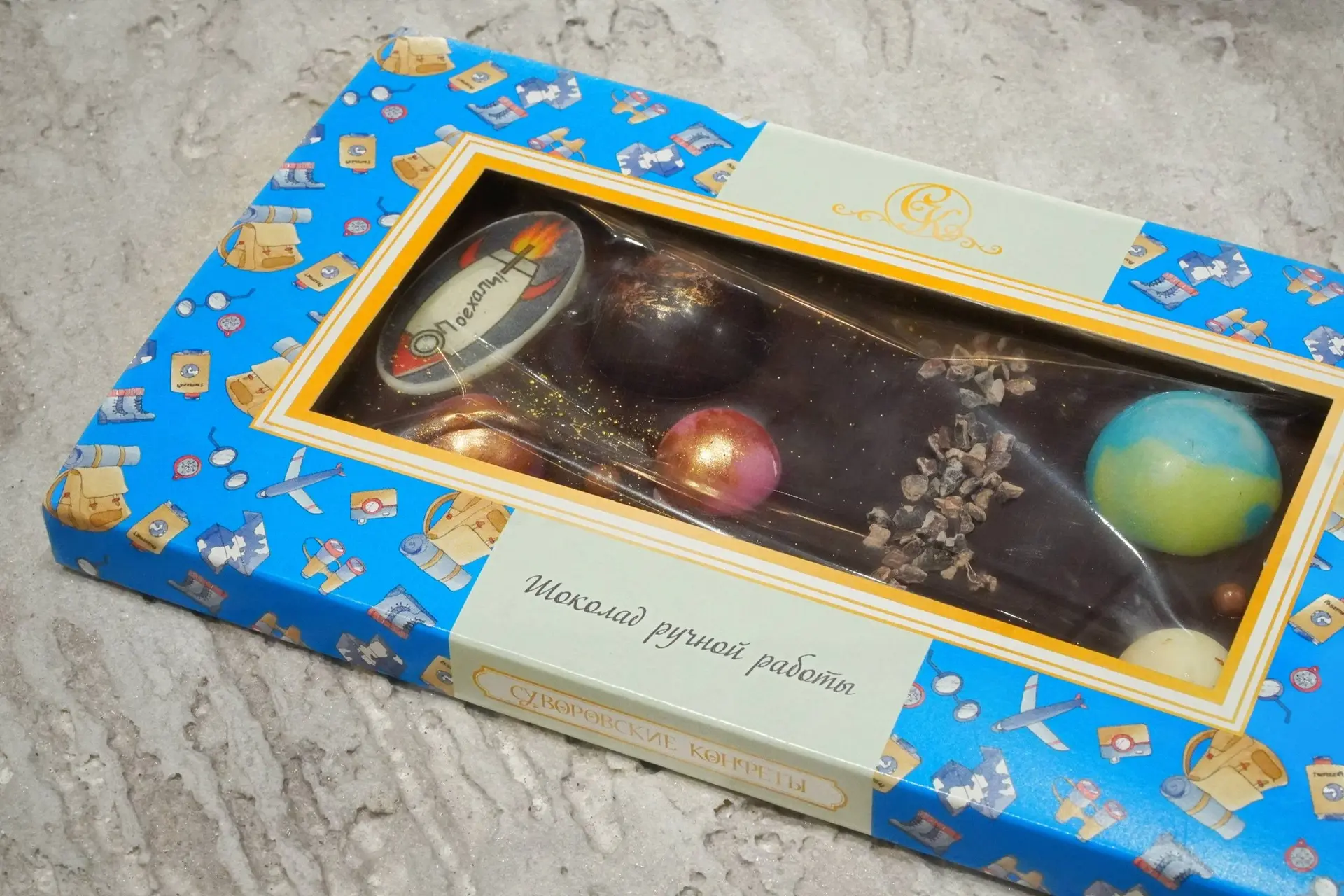 📌 «Суворовские конфеты» — бренд изысканных шоколадных изделий ручной работы из Тульской области. Попробуйте плитку с космическим декором — со съедобными планетами и легендарной фразой «Поехали!»;