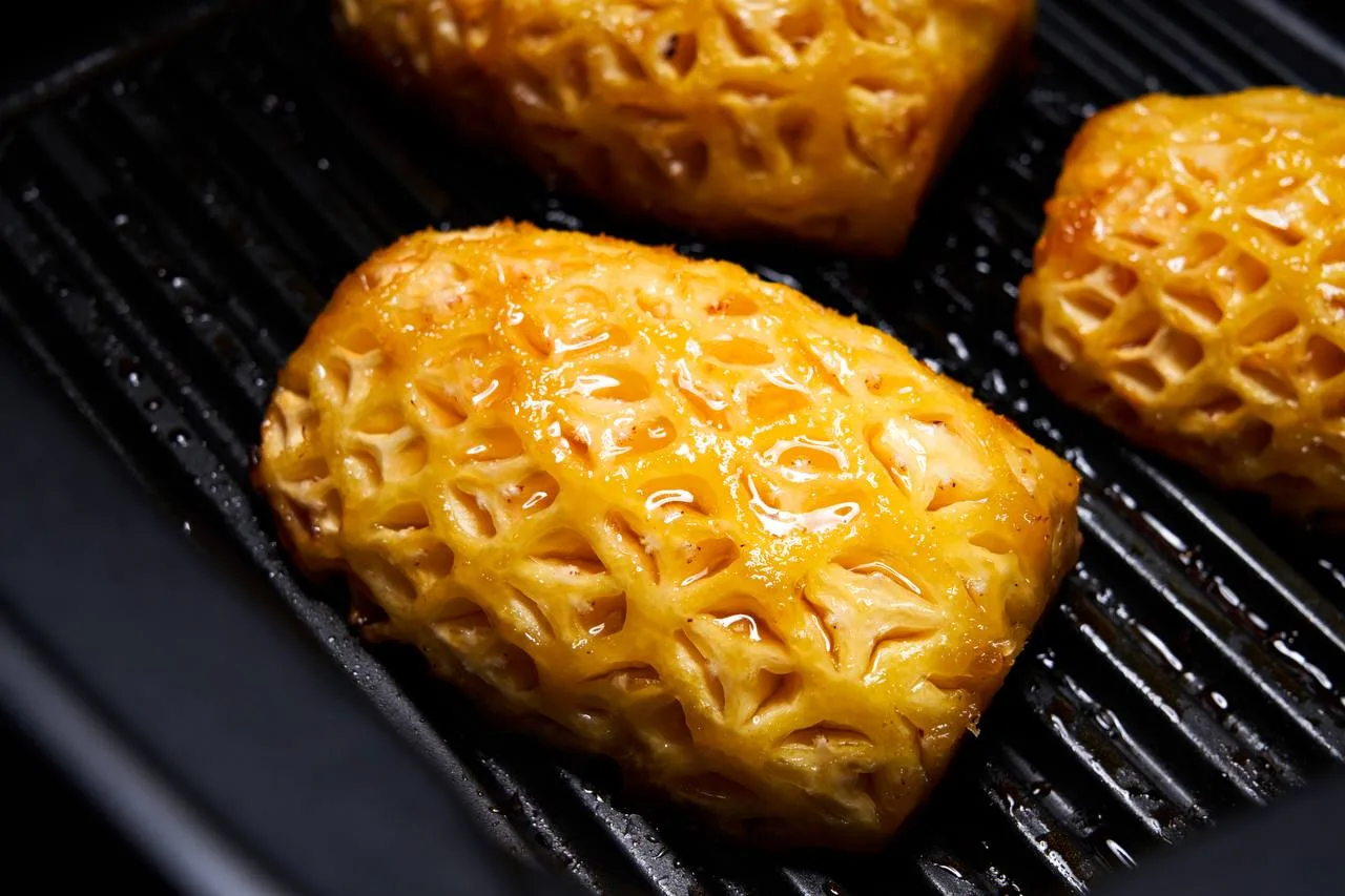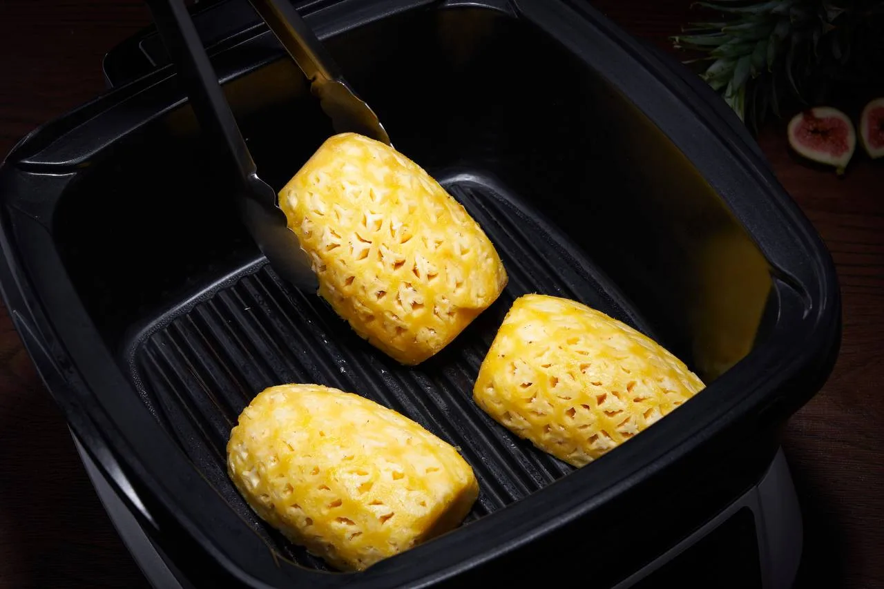 Жареный ананас с мороженым в устройстве с интеллектуальной системой приготовления