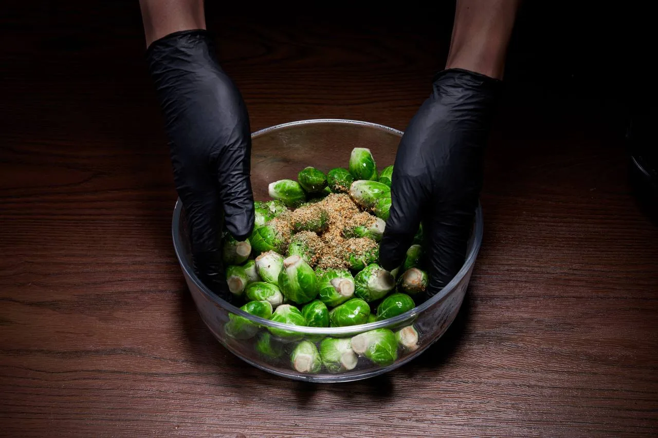 1. Брюссельскую капусту промойте водой и слейте воду.