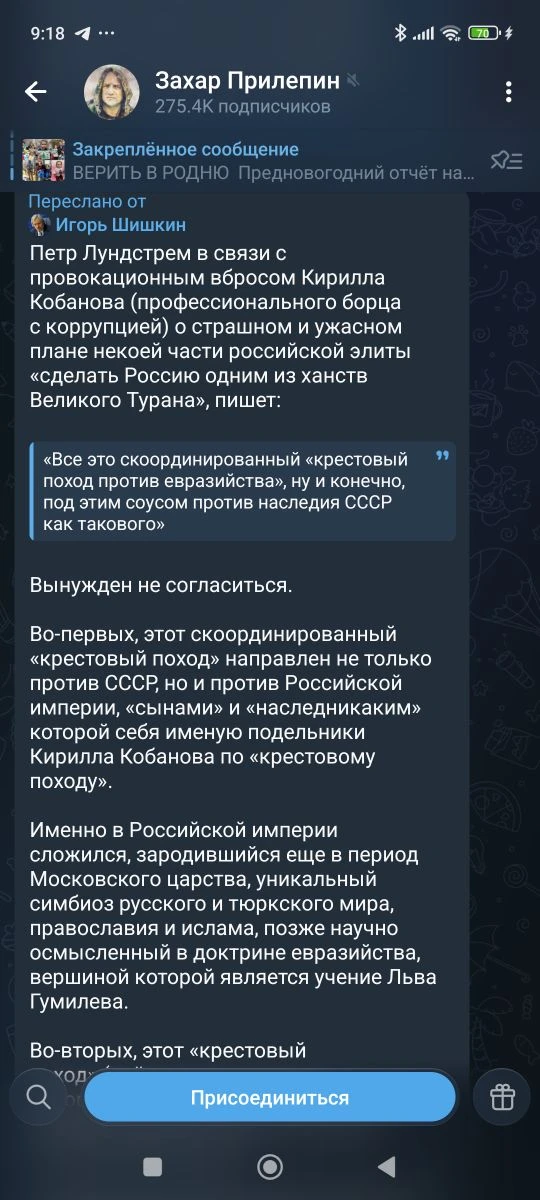 Когда любезнейший Игорь Сергеевич Шишкин, кандидат педагогических наук, восхваляет, гм, советского историка Льва Николаевича Гумилёва, как высшую точку развития «евразийства», наш Игорь Сергеевич вкупе с Петром Леонидовичем Лундстремом, кандидатом скрипичных наук, даже не представляют, насколько они правы.