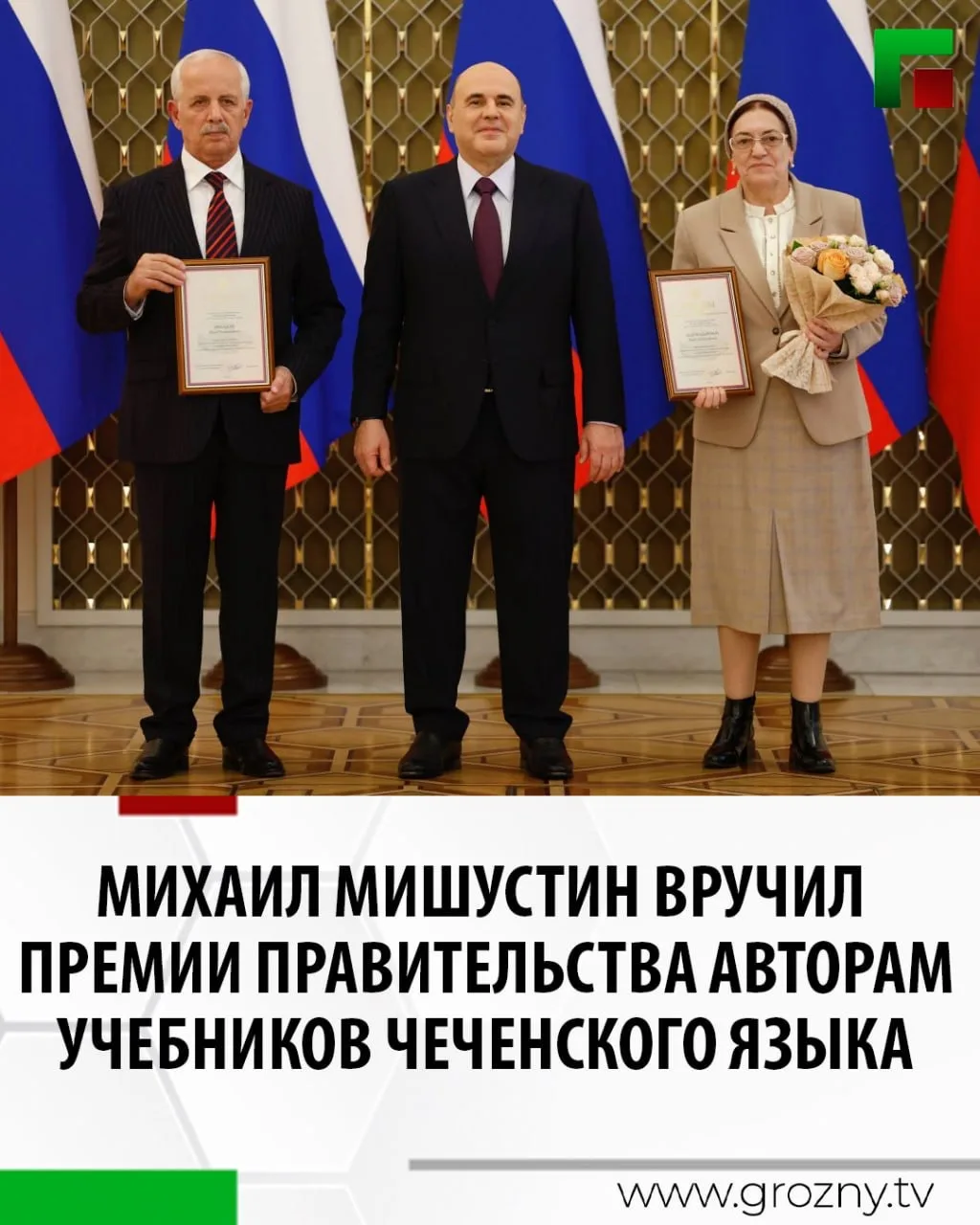 Председатель Правительства РФ Михаил Мишустин вручил премии правительства авторам учебников чеченского языка для 5, 9 и 10–11 классов. Об этом сообщил Глава ЧР Рамзан Кадыров в своем телеграм-канале.