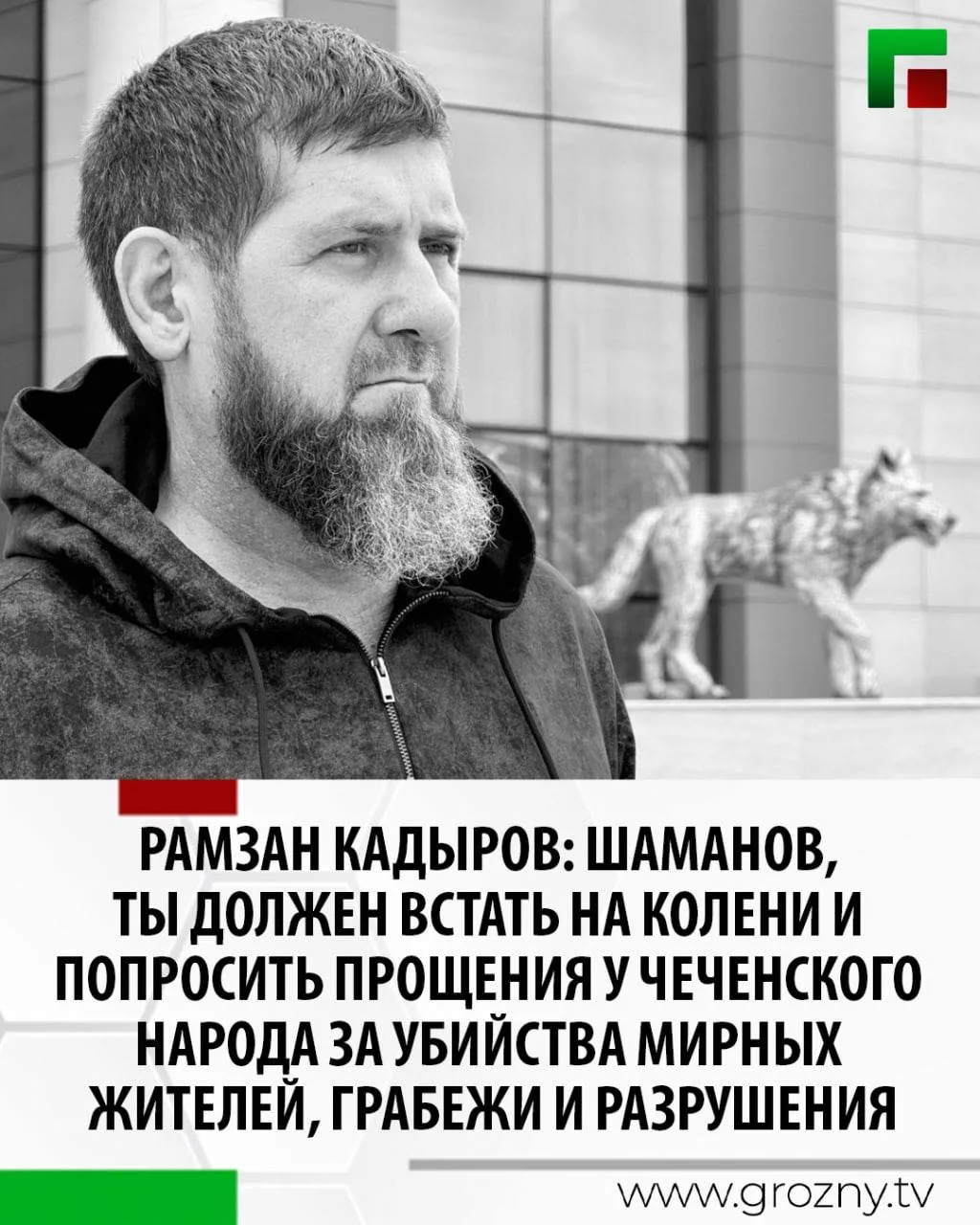 «Обращаюсь к тебе лично, Шаманов. Если слово «патриот» для тебя не пустой звук, собирай своих таких же сторонников и отправляйся на передовую в зону СВО. Посмотрим на твои «умения». Твой «богатый опыт», который ты накопил, издеваясь над мирным населением, нам известен не понаслышке. Поэтому ты не имеешь морального права сидеть в Думе и выдавать себя за «народного защитника». Перестань прятаться за депутатским мандатом и громкими словами. Ты публично защищал Буданова — убийцу беззащитной чеченской девушки. Для нас он навсегда останется символом зверств и позора того времени, а твоё имя теперь стоит рядом с его именем. Ты должен встать на колени и попросить прощения у чеченского народа за убийства мирных жителей, грабежи и разрушения. У тебя уже нет силы изменить положение дел — есть только злоба и попытки выплеснуть свою желчь наружу. Твои слова не отменят достижений чеченского народа. Встретимся в суде, и если правосудие свершится, ты ответишь за каждое слово и поступки», - заявил Глава Чеченской Республики.