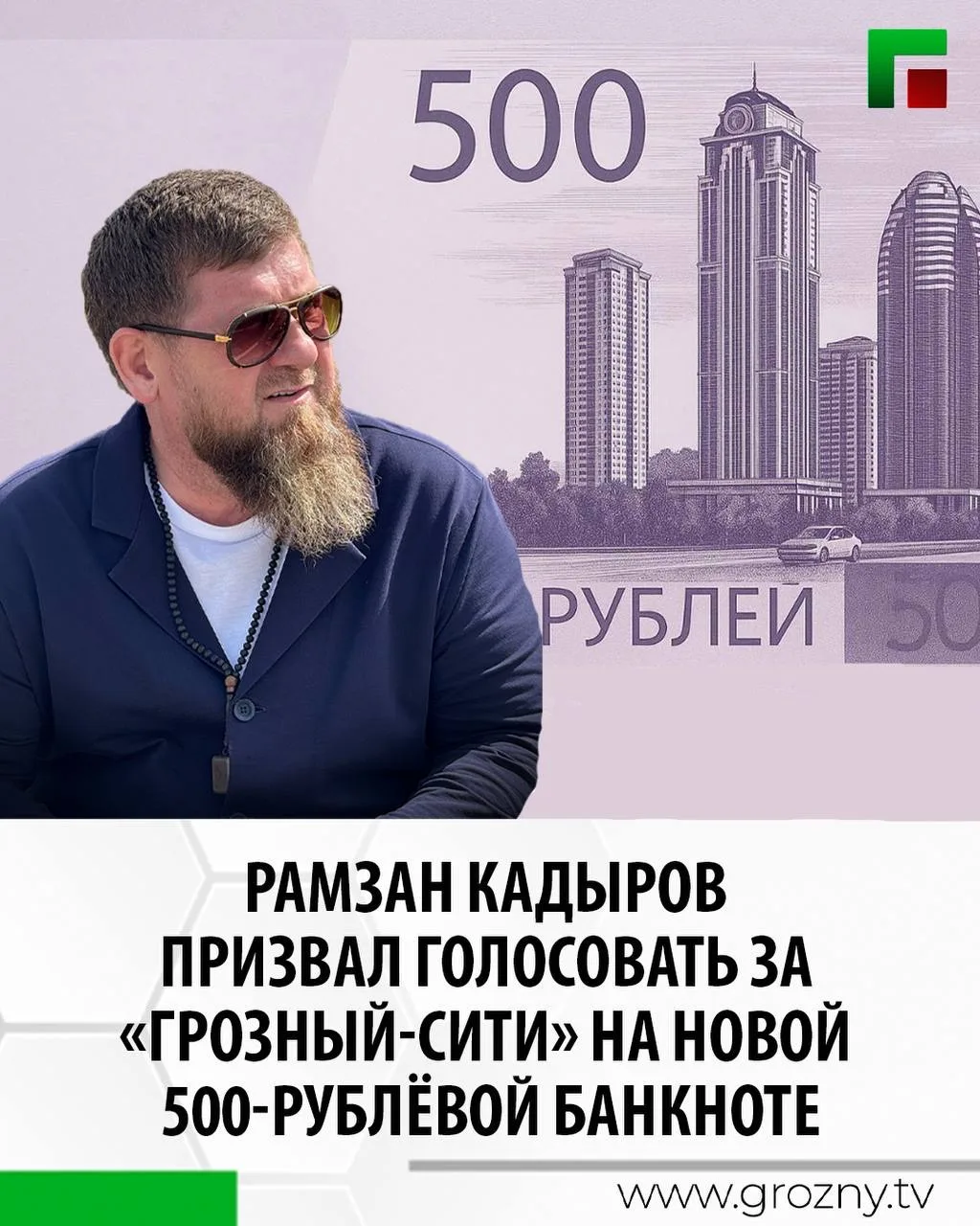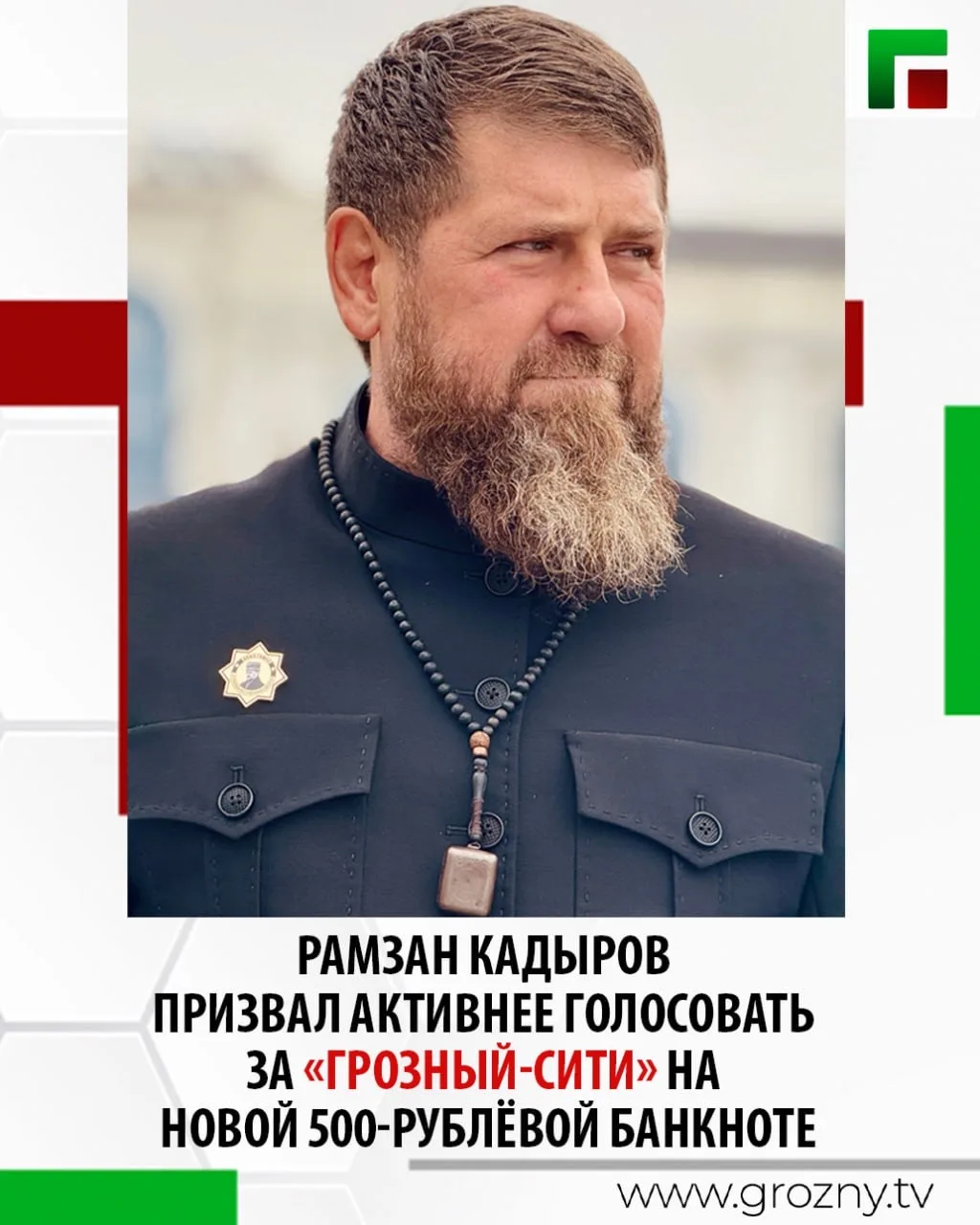 Глава Чеченской Республики Рамзан Кадыров сообщил, что во Всероссийском голосовании за символы, которые украсят новую 500-рублёвую банкноту, город Грозный уверенно держится среди лидеров, уступая чуть больше 20 тысяч голосов.
