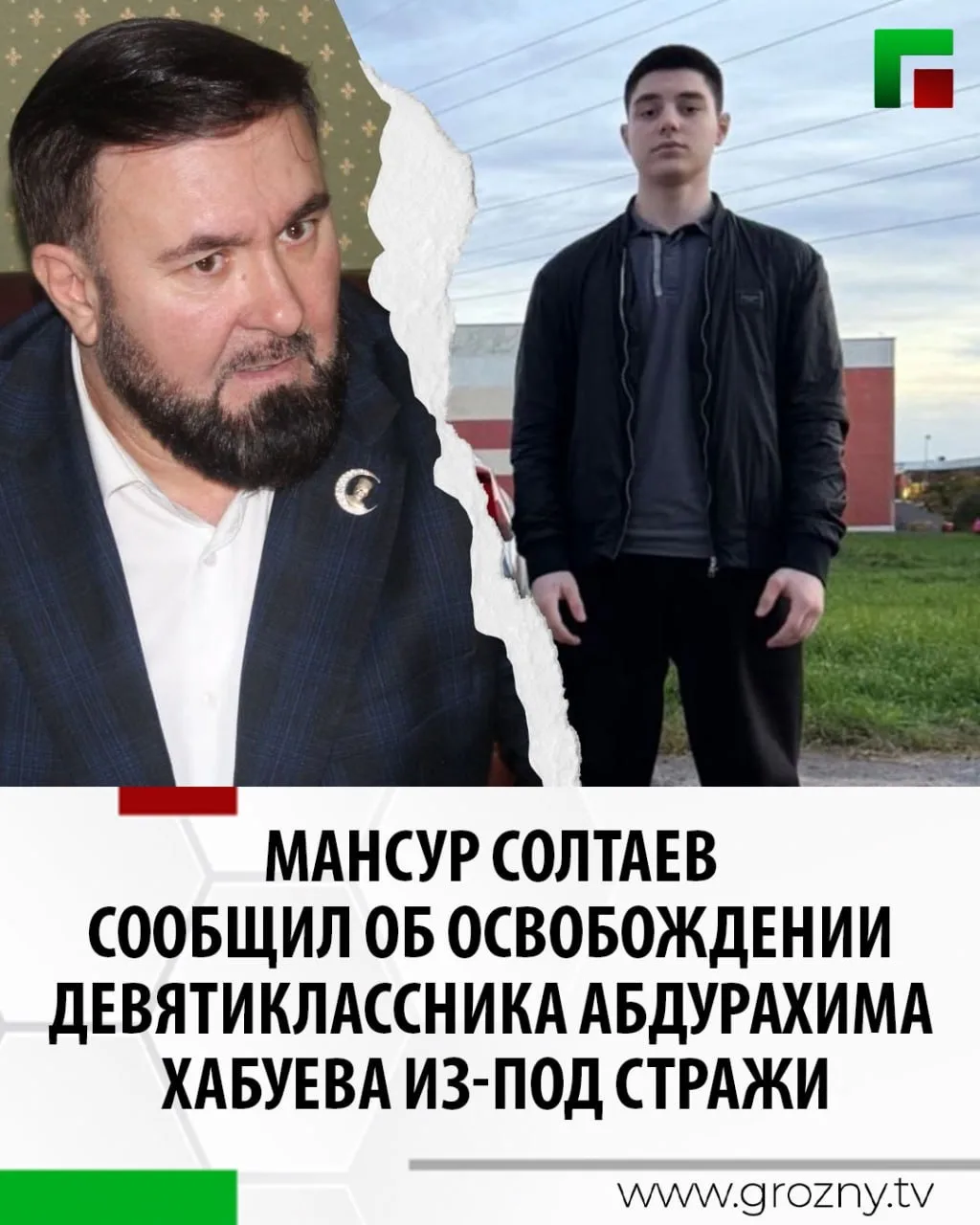 "С радостью сообщаем о важной и долгожданной новости — завершилось рассмотрение дела девятиклассника Абдурахима Хабуева, задержанного по статье 213 УК РФ (хулиганские действия). В тесном взаимодействии с представителем Главы Чеченской Республики в Тверской области Тарамовым Хасаном мы внимательно следили за ходом судебного процесса и ставили своей главной задачей защиту прав молодого человека", - написал Солтаев на своей странице в соцсети.