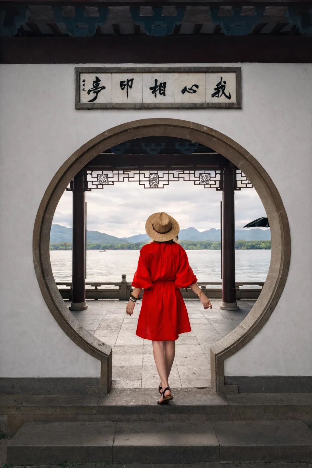 Озеро огромное! И входов в парковую зону у него много. Мы сели на лодку, чтобы покататься и добраться до острова в центре озера, откуда можно сделать тот самый знаменитый кадр с юаня. Пирс для экскурсии на лодку – тут, но можно сесть и в других местах. Билет на прогулочный кораблик туда-обратно – 55¥.