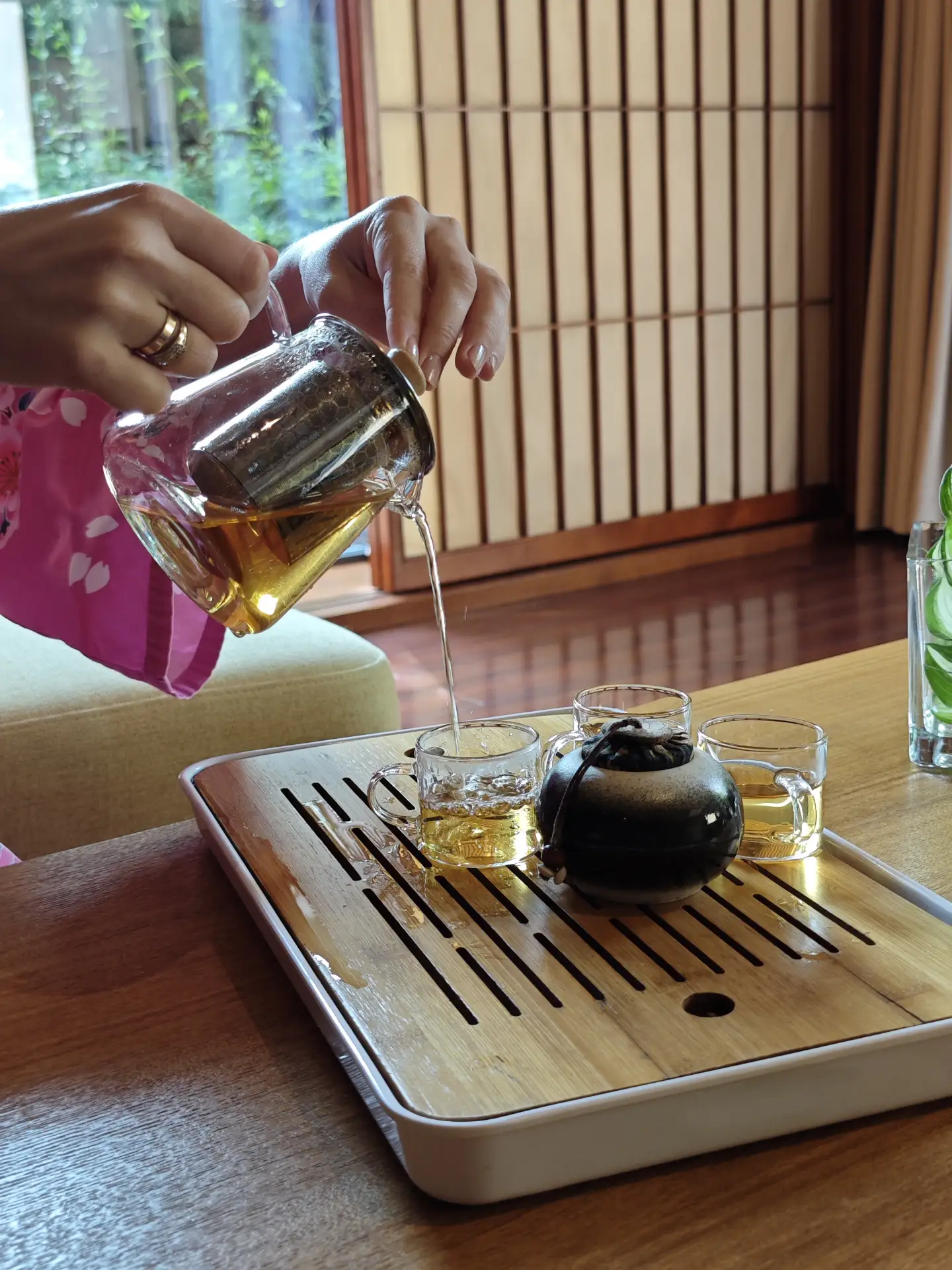 Место очень красивое, и если бы время позволяло, погуляли бы там весь день. Сама деревня не очень большая, а вход на чайные плантации свободный. Там обязательно надо попробовать местного чая – на наш вкус он вообще не был похож на всё, что мы пробовали.