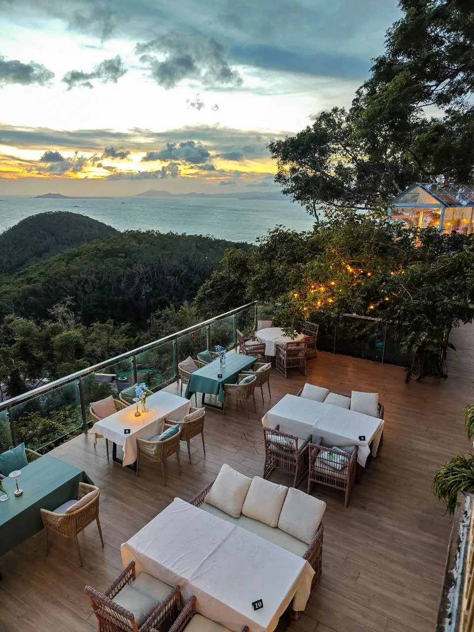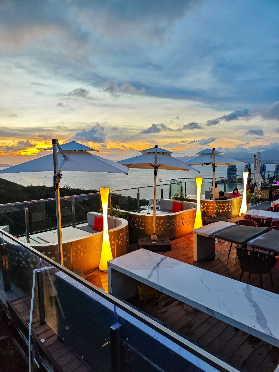 Про это место пишут, что оно напоминает курорты Ривьеры: терраса из тикового дерева, уютные кресла с подушками, живые растения. Вид на набережную Вайтань, конечно, шикарный. Есть нюанс – в холодное время года террасу могут закрывать, так что перед походом лучше уточнять.