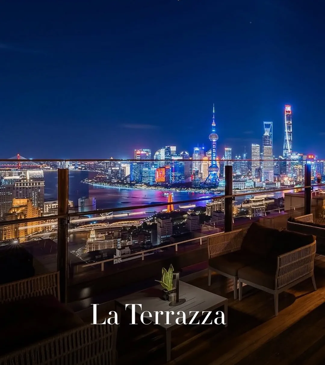 Изящная терраса над рекой при знаменитом ресторане французско-азиатской кухни. Отсюда открывается 270-градусная панорама на реку Хуанпу и небоскрёбы Пудуна. Закрыта с января по март из-за погоды. Ещё важный момент: строгий дресс-код – без шлёпанцев и маек, и несовершеннолетних не пускают.