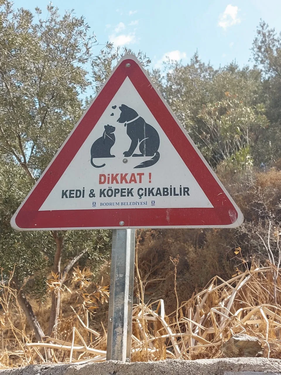 ⚠️🐕 А кроме них – специально нашла в закромах нашего облачного хранилища знак, который мы повсеместно видели в Бодруме на дорогах. Он просит быть внимательными – на дороге могут появиться хвостатые, так что водители, будьте аккуратны.