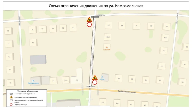В связи с проведением аварийно-восстановительных работ на водопроводном колодце 8 апреля с 10:00 и до 23:00 9 апреля будет временно ограничено движение автотранспортных средств по ул. Комсомольской на участке от ул. Рыбаковской до ул. Григорьевской.
