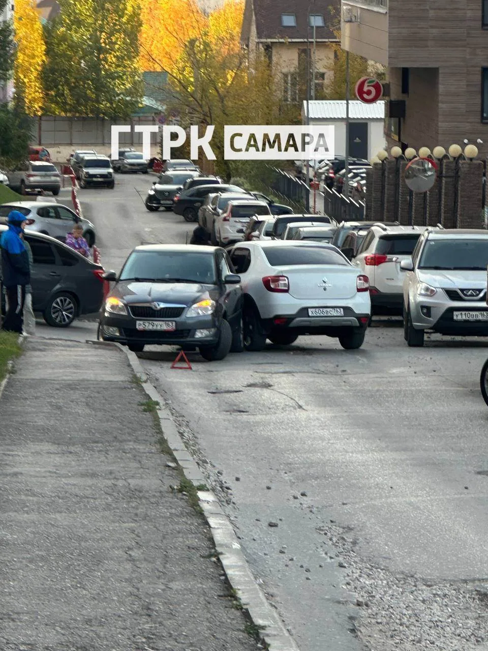 Renault Logan и Skoda Fabia не смогли разъехаться. Теперь местные жители жалуются: заехать на 7-ю Просеку стало затруднительно.
