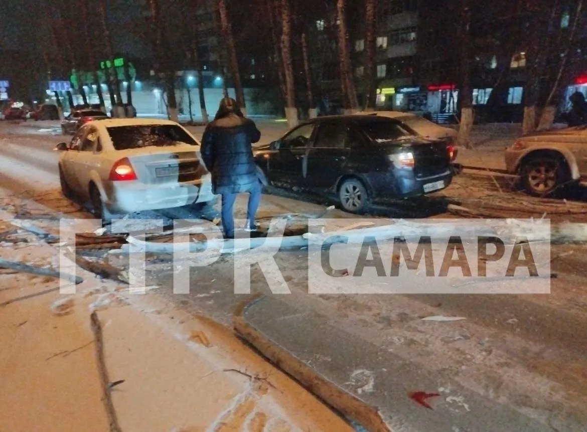 Из-за сильного, порывистого ветра деревья не выдержали давления и сломались — падение пришлось прямиком на проезжающие машины.