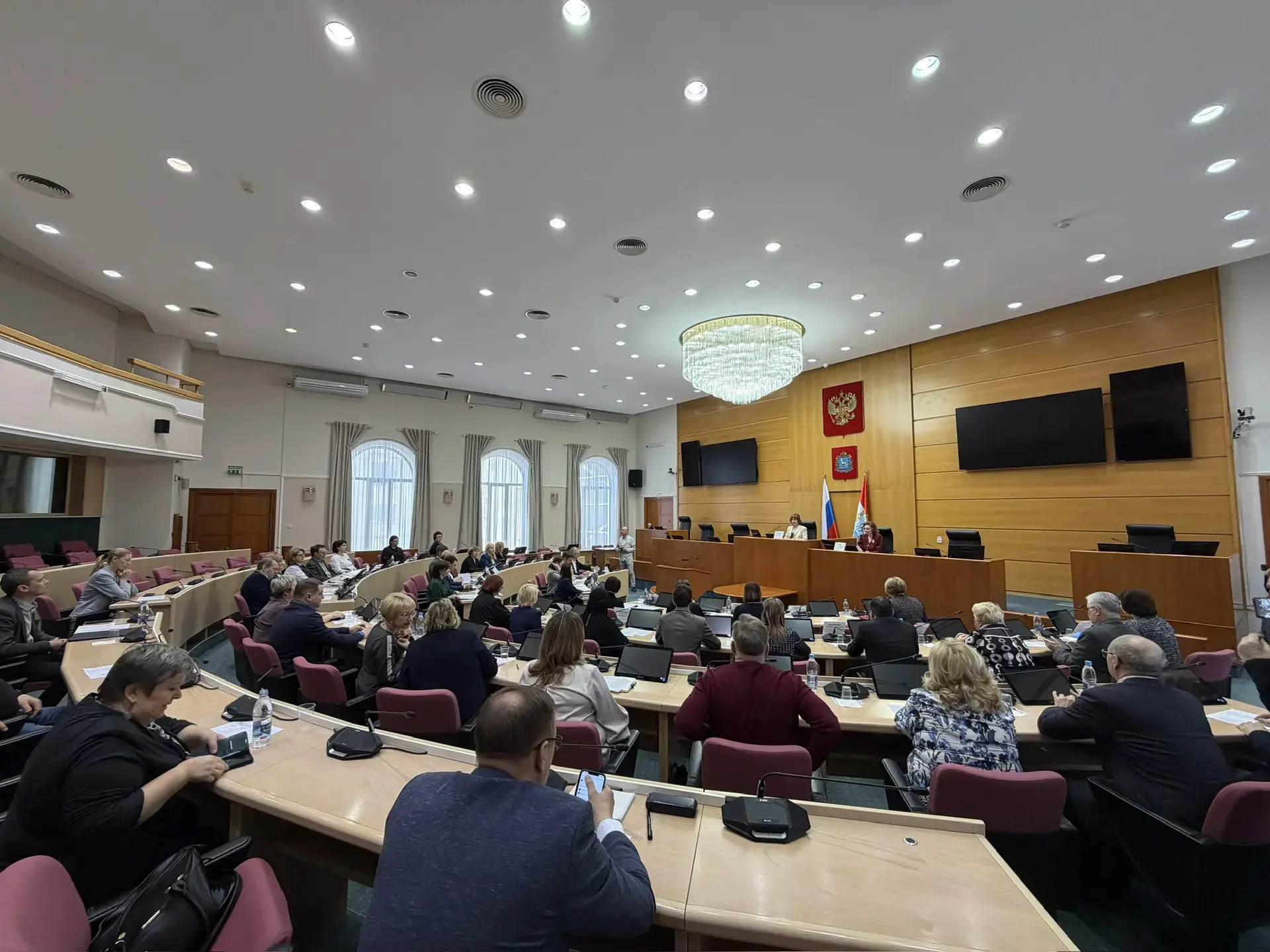 Масштабное совместное совещание трех общественных комиссий при профильных комитетах регионального парламента проходит в зале заседаний.