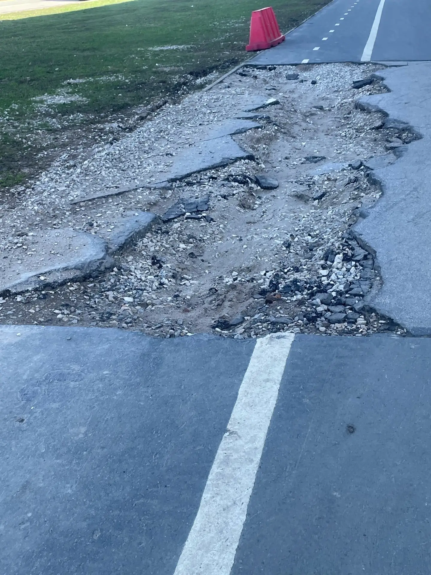 «Асфальтовое покрытие на данном участке сильно разрушено, травмоопасно . Уже давно не могут решить эту проблему...» — пишет жительница города.