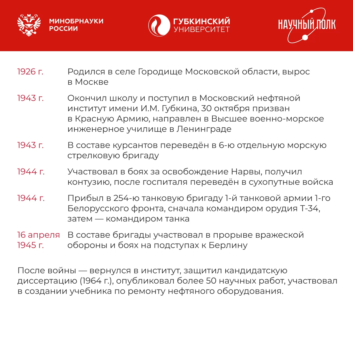 🎂 Мы вспоминаем учёных и преподавателей, со дня рождения которых в 2026 году исполняется более 100 лет. Это люди, чьё наследие стало неотъемлемой частью истории университета и всей нефтегазовой отрасли.