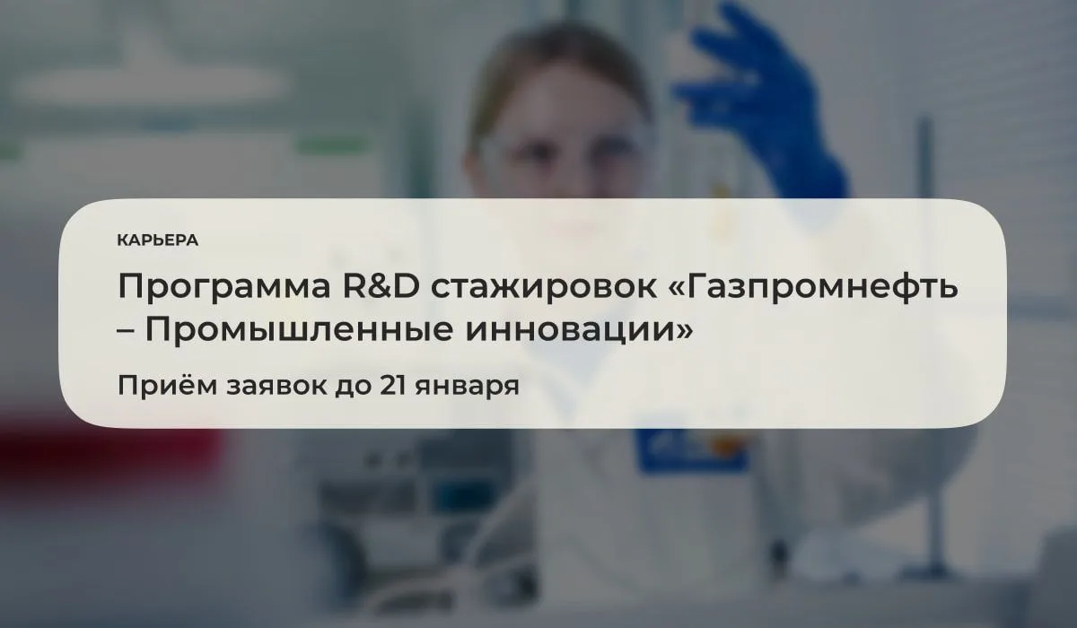 До 21 января 2026 года открыт приём заявок на участие в программе научных стажировок R&D-центра в Санкт-Петербурге компании «Газпром нефть – Промышленные инновации».
