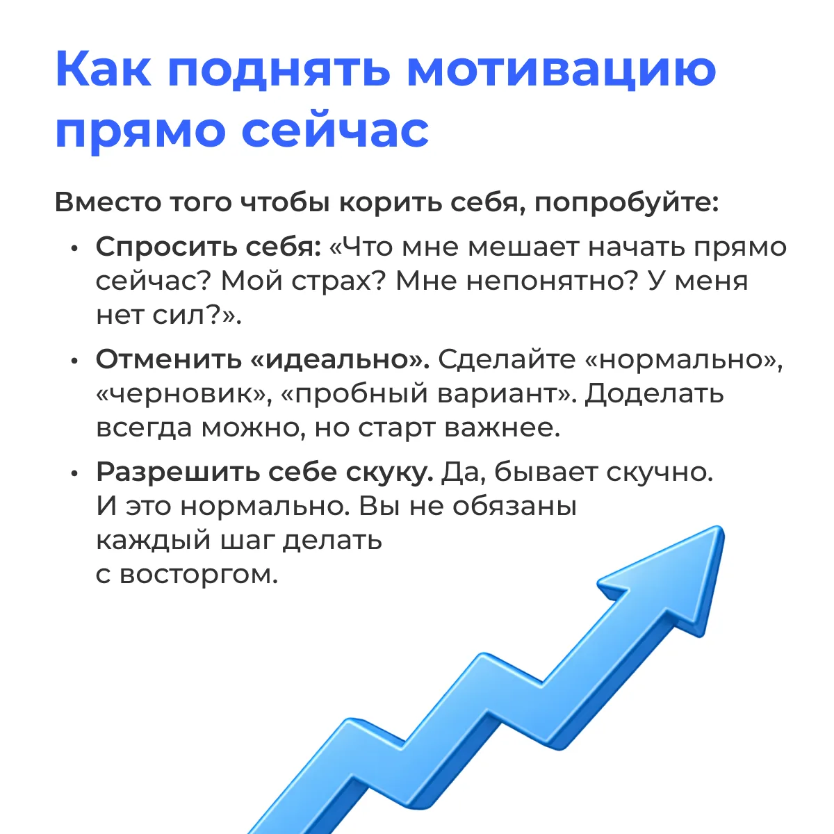 Часто мы путаем отсутствие мотивации с усталостью, страхом, непониманием, с чего начать, или просто желанием побыть в покое.