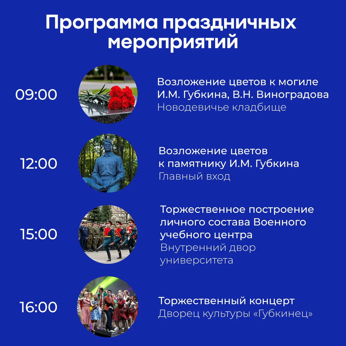 📅 С конца марта по май на территории университета, студенческого городка и других площадках проходят памятные, спортивные, научные, культурные и студенческие мероприятия под общим девизом «День Губкинца – 2026».