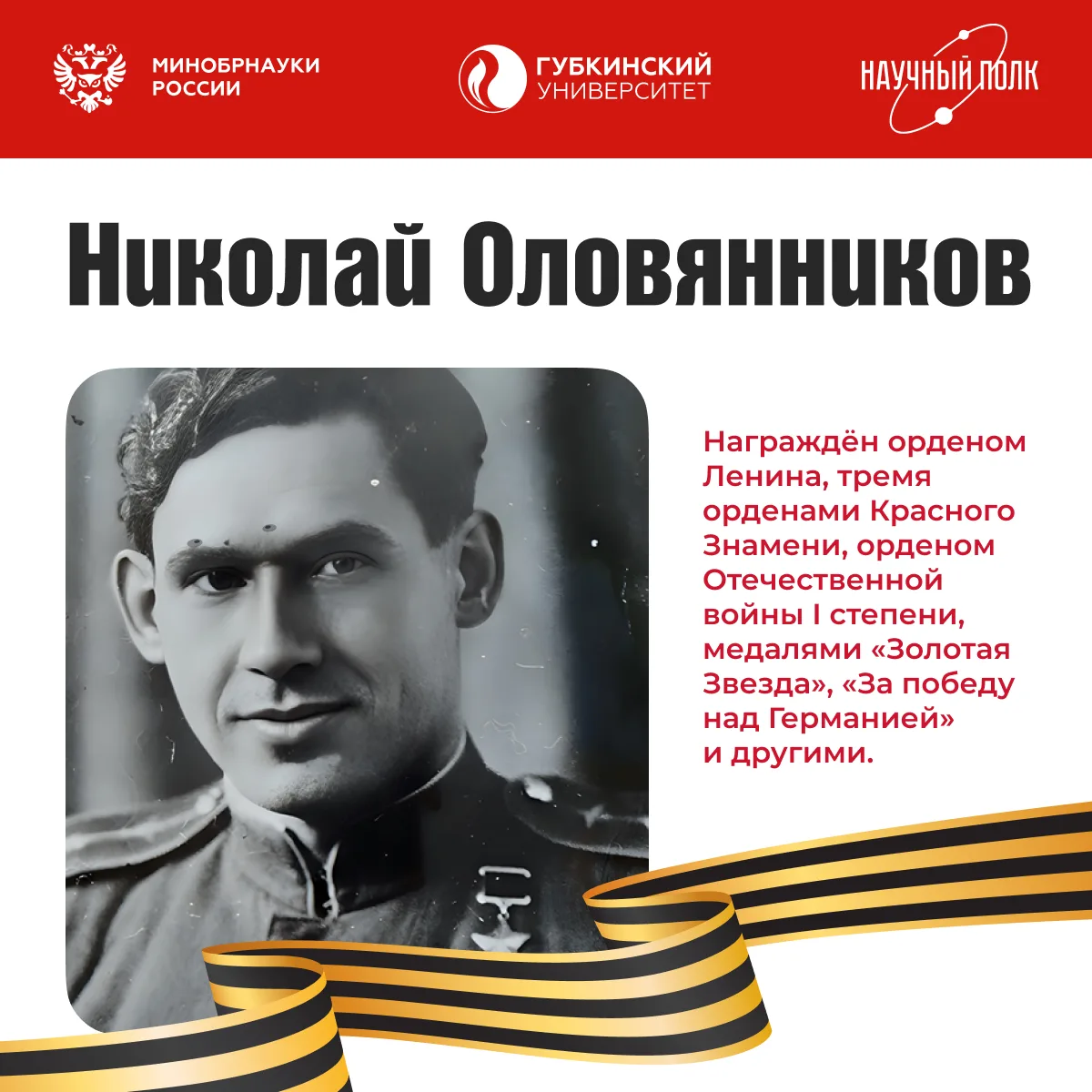 🔹 Николай Оловянников — лётчик-штурмовик, Герой Советского Союза. Совершил 212 боевых вылетов, наносил удары по вражеской технике и живой силе. Последний вылет выполнил 8 мая 1945 года — над портом Свинемюнде, уже видя белые флаги в окнах освобождённых городов.