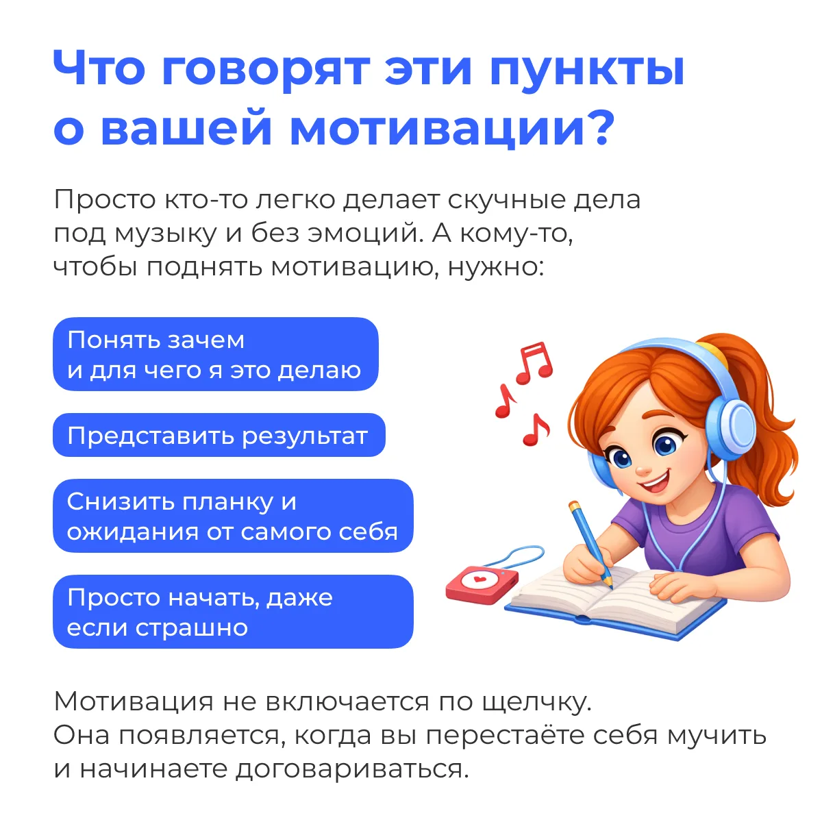 ✅ Давайте проверим, как у вас с мотивацией на самом деле. Отмечайте пункты, которые близки вам.