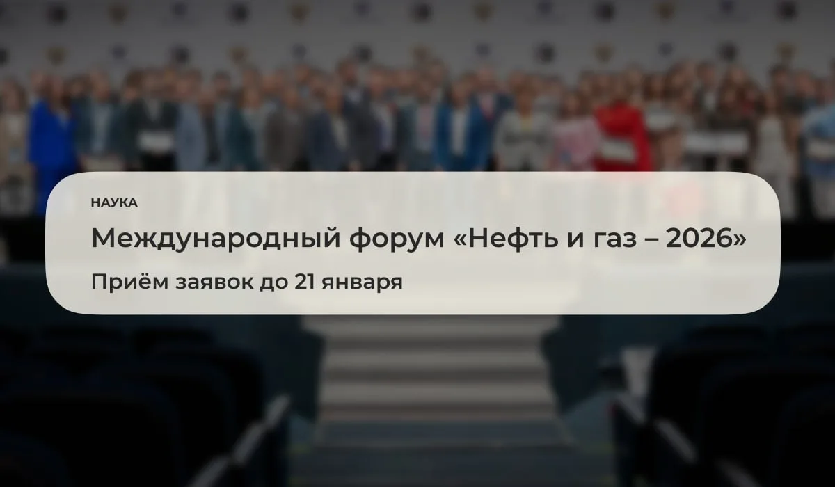 Приём заявок на участие в 80-й Международной молодёжной научной конференции «Нефть и газ – 2026», а также в 19-й Всероссийской научно-технической конференции «Актуальные проблемы развития нефтегазового комплекса России» продлён до 21 января 2026 года.